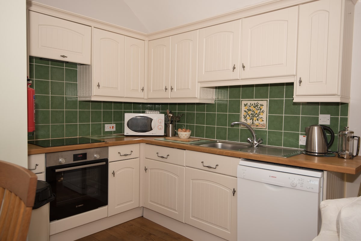 Beschreibung der Unterkunft Bettwäsche, Handtücher und WLAN inklusive. Erdgeschoss: Alle im Erdgeschoss. Wohn-/Esszimmer: Mit Holzofen, 43-Zoll-Satelliten-Smart-TV und Balken. Küche: Mit Elektroherd, Mikrowelle, Kühlschrank/Gefrierschrank, Geschirrspüler und Waschmaschine. Schlafzimmer 1: Mit Reißverschluss und Verbindung Super-Kingsize-Bett (kann auf Anfrage Einzelbetten sein). Schlafzimmer 2: Mit einem Doppelbett. Badezimmer: Mit Dusche über Badewanne, WC und beheiztem Handtuchhalter. Lagerheizungen