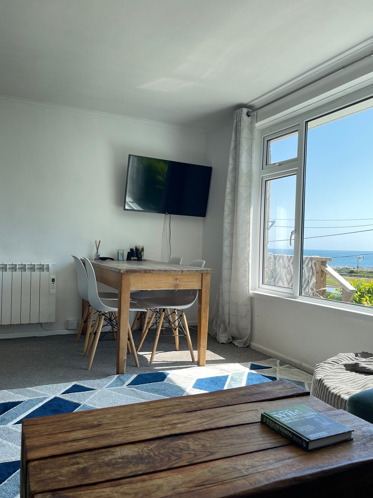 Unsere helle, luftige, unabhängige Wohnung bietet dir einen erholsamen Rückzugsort mit herrlichem Blick auf das Meer. Du kannst dich darauf freuen, nach einem Tag am Strand mit einem Getränk auf deinem privaten Balkon zu sitzen oder dich nach einem stürmischen Spaziergang mit Blick ins Tal zum Strand im Whirlpool aufzuwärmen. Oder kuschel dich auf die bequemen Stühle, um ein Buch zu lesen oder Brettspiele zu spielen. Es ist ein einfacher Spaziergang hinunter ins Dorf, um einige lokale Biere im Pub zu genießen, oder du kannst leckeres Essen im Dorfbistro essen.