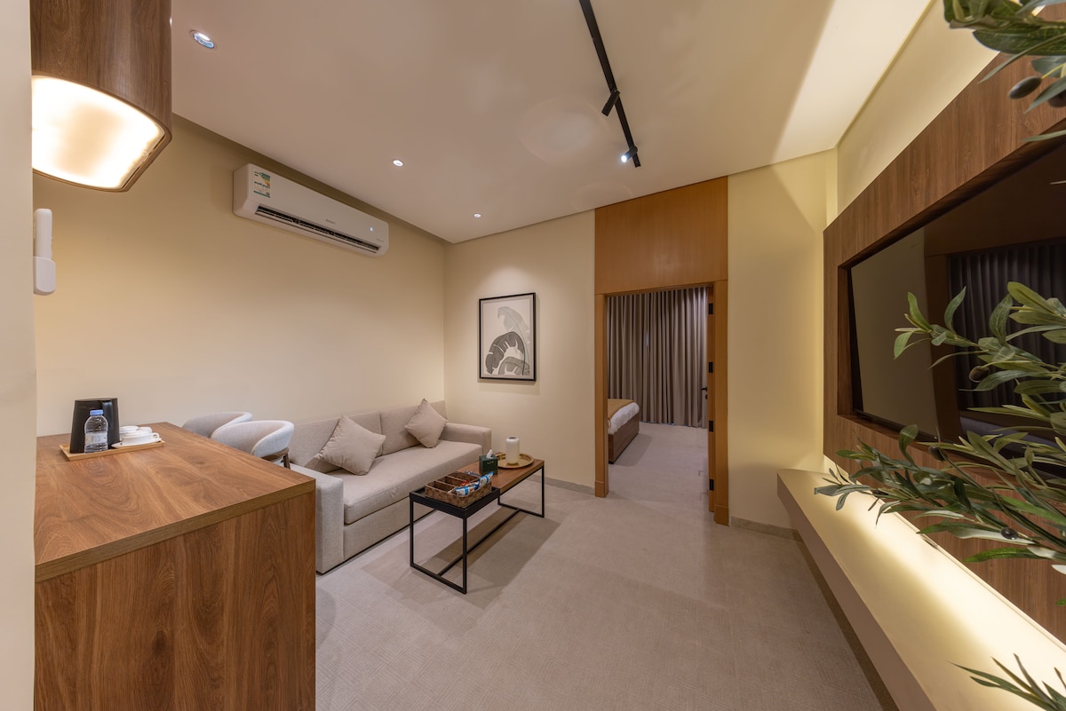 New bohemian style studio with smart TV in northern Riyadh, besides BLVD world in new building in the most prestigious district in Riyadh, Heteen We offer free cleaning services for our guests ✔️