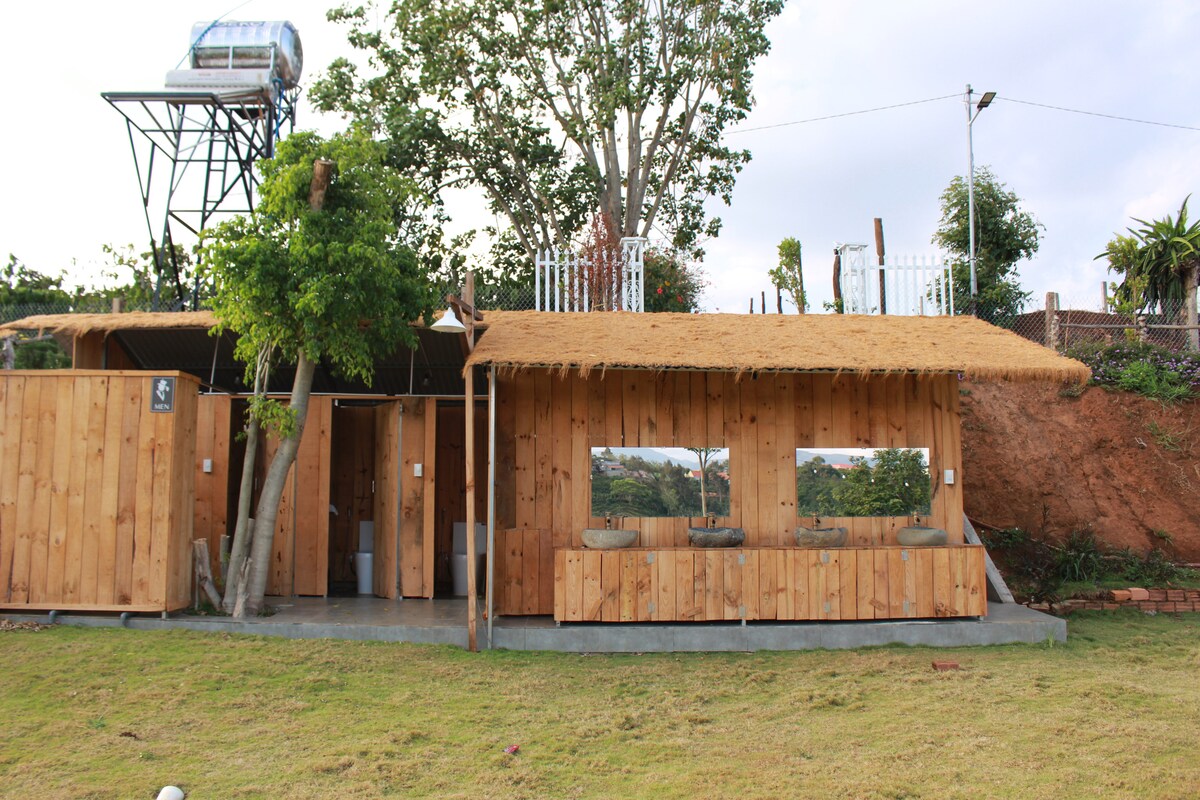 Gartenhaus mit landwirtschaftlichem Erlebnis, mitten in der Natur gelegen, frisches kühles Klima, in der Nähe des schönsten Wasserfalls in Nam (Poongur - Duc Trong Wasserfall), 18 km vom internationalen Flughafen Lien Khuong, 48 km von der Stadt Da Lat, Asphaltstraße vom Highway 20 zum Haus (7 km) Geeignet für Entspannung, Ökotourismus.