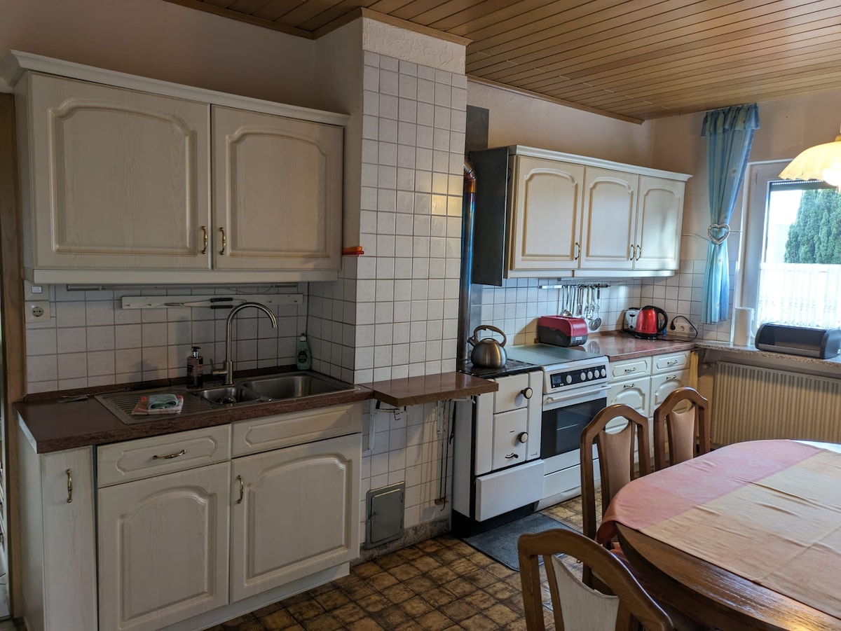 Gönnt Euch ein Besuch in unserem 2019 sanierten Fachwerkhaus Anno 1690 in der sehr ruhigen Altstadt von Stromberg, direkt am Schlossbrunnen unterhalb der 3 Burgen. Die Küche im 1.Stock befindet sich spannenderweise im ehemaligen Wehrgang der Stadtmauer. Das mittelalterliche Gebäude verfügt noch immer über die typisch steilen Eichentreppen und die Deckenhöhe ist außerhalb der Norm. Gemütliches verweilen im Haus und als Ausgangspunkt für Wanderer & Biker....für Erholung und Abenteuer...