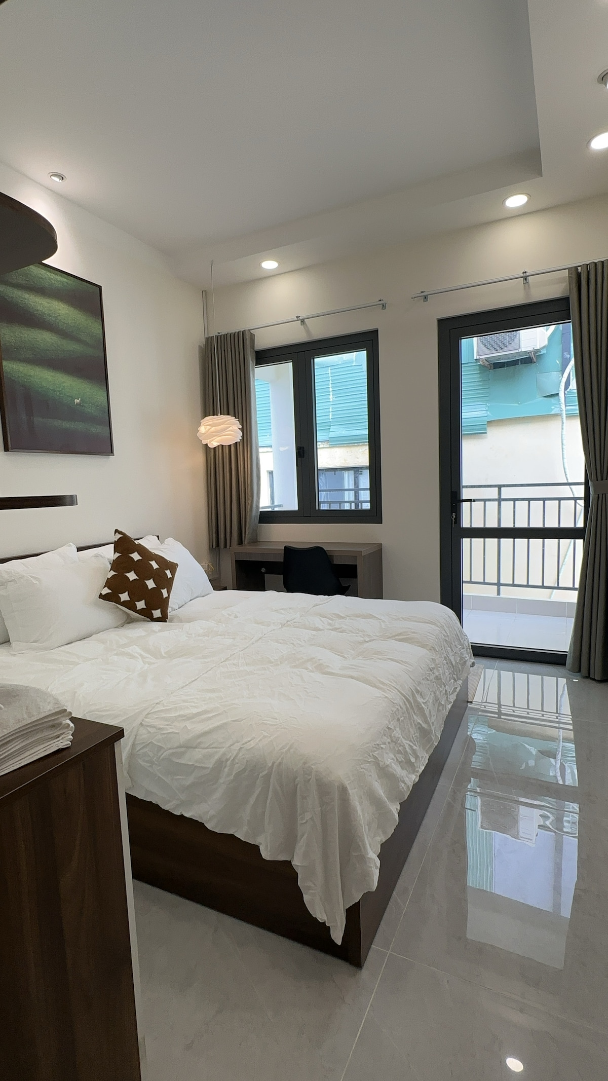 Geräumiges 27 m² großes, kürzlich renoviertes Studio in einer 5-stöckigen Villa. Hell mit einem großen Fenster und einem kleinen Balkon für frische Luft. Das Zimmer ist in einem tropischen Minimal-Stil gestaltet. Bequemes Queensize-Bett, Schreibtisch, Schlafsofa und Smart-TV mit Netflix. Zentral in der Nähe der D1, D10 und des Flughafens gelegen. Nur wenige Gehminuten von authentischen Restaurants, gemütlichen Cafés, belebten Einkaufsstraßen und Kinos wie CGV und Mega GS entfernt. Perfekt für längere Aufenthalte, diese Mischung aus Komfort, Stil und Bequemlichkeit.