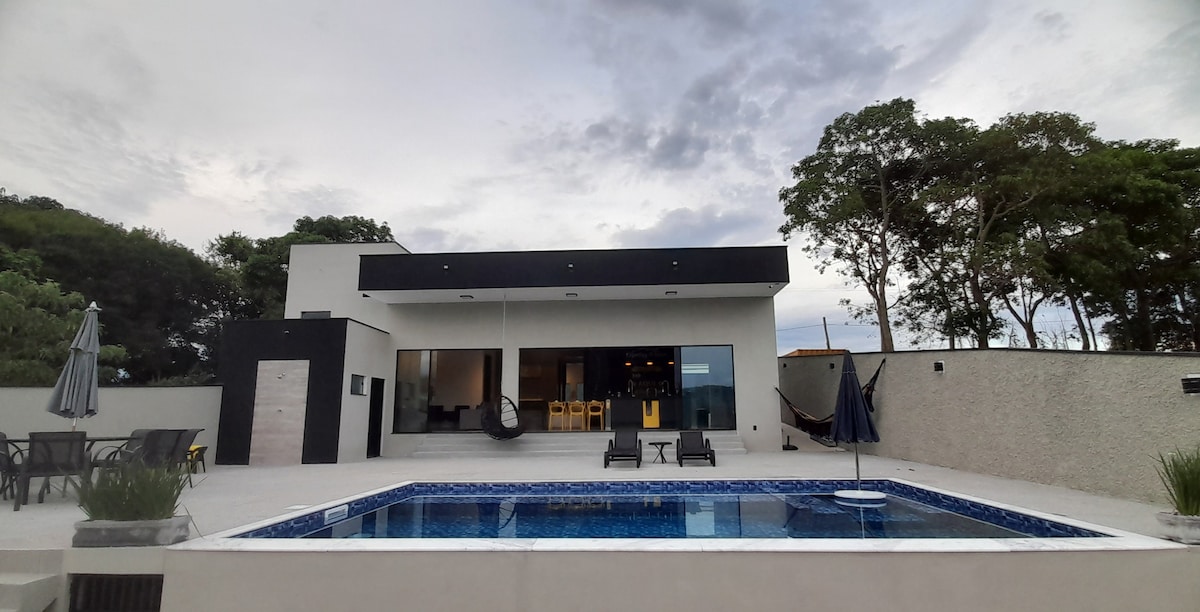 Dieses neu gebaute Haus in einer ruhigen Gegend, nur 10 Minuten vom Zentrum von Poços de Caldas entfernt, wurde mit Liebe entworfen, um bis zu 6 Personen bequem unterzubringen. Mit 2 Schlafzimmern, jedes mit eigenem Bad und Schreibtischen für Homeoffice-Arbeit, sowie einem Schlafsofa im Wohnzimmer. Dieser Raum bietet flexible Unterkünfte für einen gemütlichen Aufenthalt. Geräumiges Wohnzimmer, voll ausgestattete Küche, Waschraum, Grill und 2 Garagenplätze. Das Haus vereint Raffinesse, Funktionalität und Eleganz.