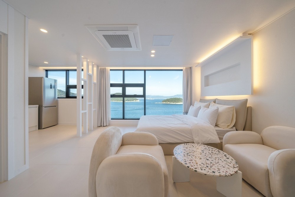Diese von Europa inspirierte Unterkunft ist handgefertigt mit sorgfältig ausgewählten Materialien und von Zypressen fertiggestellten Vermietern. Vor der Unterkunft, das endlose Namhae Sea Es ist eine sehr ruhige Unterkunft in einem neu geschaffenen spanischen Dorf in Namhae, wo du die natürliche Schönheit von Hogusan genießen kannst, wo du die Felsen mit Tiger im hinteren Teil der Unterkunft sehen kannst und ein Tal, das in den vier Jahreszeiten neben der Unterkunft nicht austrocknet.