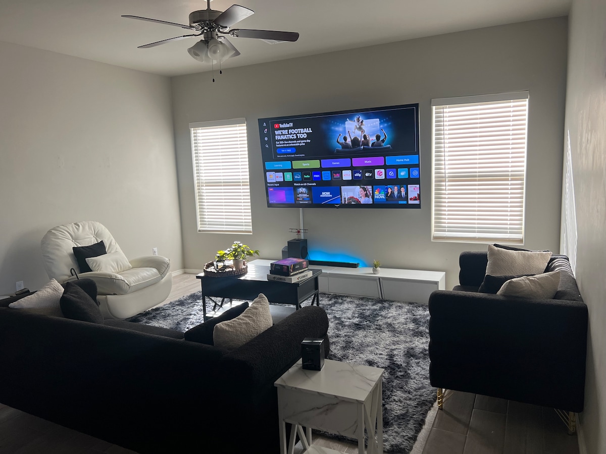 Erlebe dein sauberes, komfortables und geräumiges südwestliches Zuhause in Las Cruces, NM, jetzt mit einer brandneuen Klimaanlage. Dein Zuhause verfügt über wunderbare Annehmlichkeiten: eine voll ausgestattete Küche, Waschmaschine/Trockner, Bügeleisen, komfortable Betten (Kingsize- und Queensize-Bett), 65-Zoll-Flachbildfernseher im Wohnzimmer mit WLAN, sichere Garage für zwei Autos und einen Hinterhof mit einem atemberaubenden Blick auf die Organ Mountains. Nur wenige Minuten von der I-25/US-70 entfernt, erreichst du bequem die Innenstadt, Mesilla, NMSU, White Sands und den Lincoln Forest.
