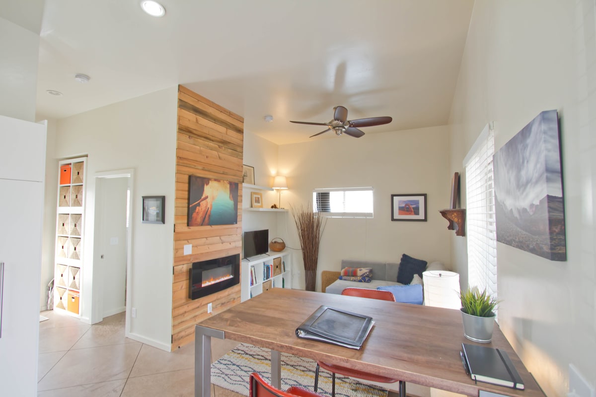 Dies ist ein komplett separates 1-Schlafzimmer-Haus und alles ebenerdig, also keine Treppen! Dies ist kein winziges Haus, alle Bereiche dieses kleinen Hauses sind ziemlich geräumig. Die leere angeschlossene 2-Auto-Garage ist vor allem im Winter oder an einem regnerischen Tag mit der Verwendung eines Garagentoröffners während deines Aufenthalts großartig. Egal, ob Sie eine vierköpfige Familie oder Freunde sind, die einfach nur für das Wochenende wegkommen möchten, dieses stilvolle Ferienhaus ist ein perfekter Kurzurlaub. In der Nähe des Grand Canyon, Sedona & Lake Powell. Mindestaufenthalt 2 Nächte