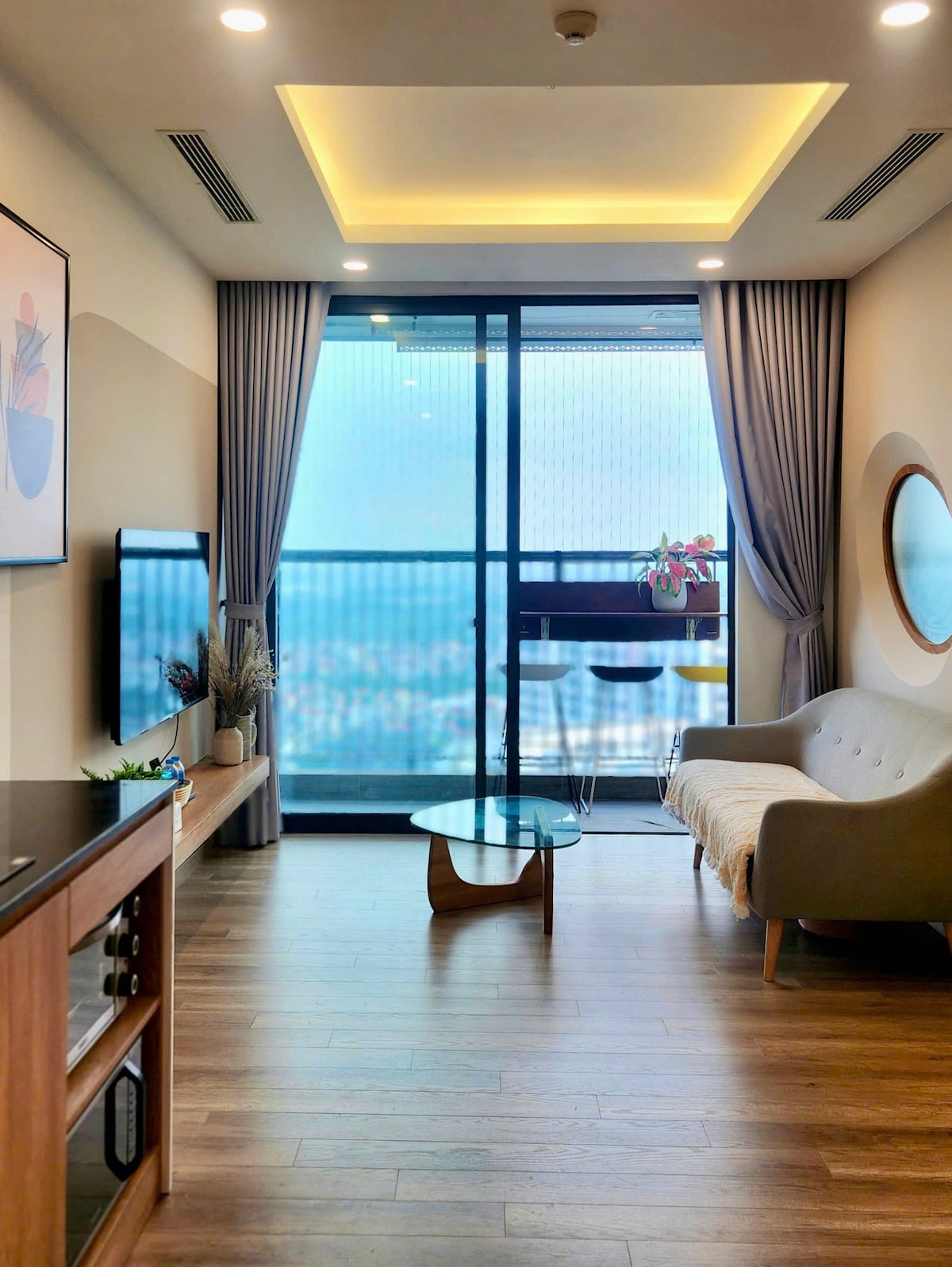 Luxuriöses VIP-Apartment mit 2 Schlafzimmern im Landmark, auf einer hohen Etage mit atemberaubendem Blick auf den Golfplatz. Helles, modernes Design mit allen Annehmlichkeiten, einem großzügigen Wohnbereich und komfortablen Schlafzimmern. Genieße im Ecopark eine ruhige, grüne Umgebung, frische Luft und eine entspannende Atmosphäre – perfekt sowohl für Kurzaufenthalte als auch für einen längeren Aufenthalt.