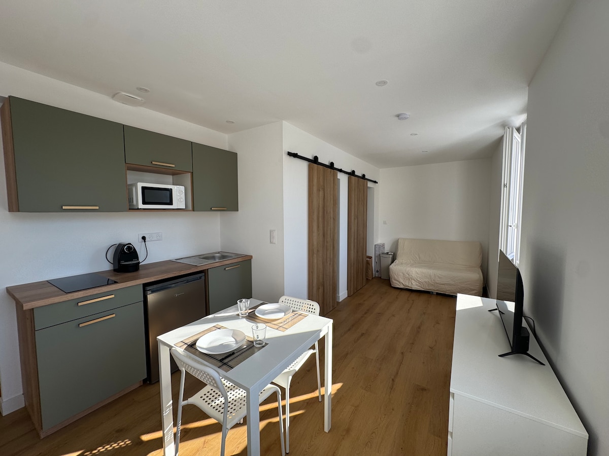 Studio, 2 Minuten vom Strand entfernt, richtiges Bett