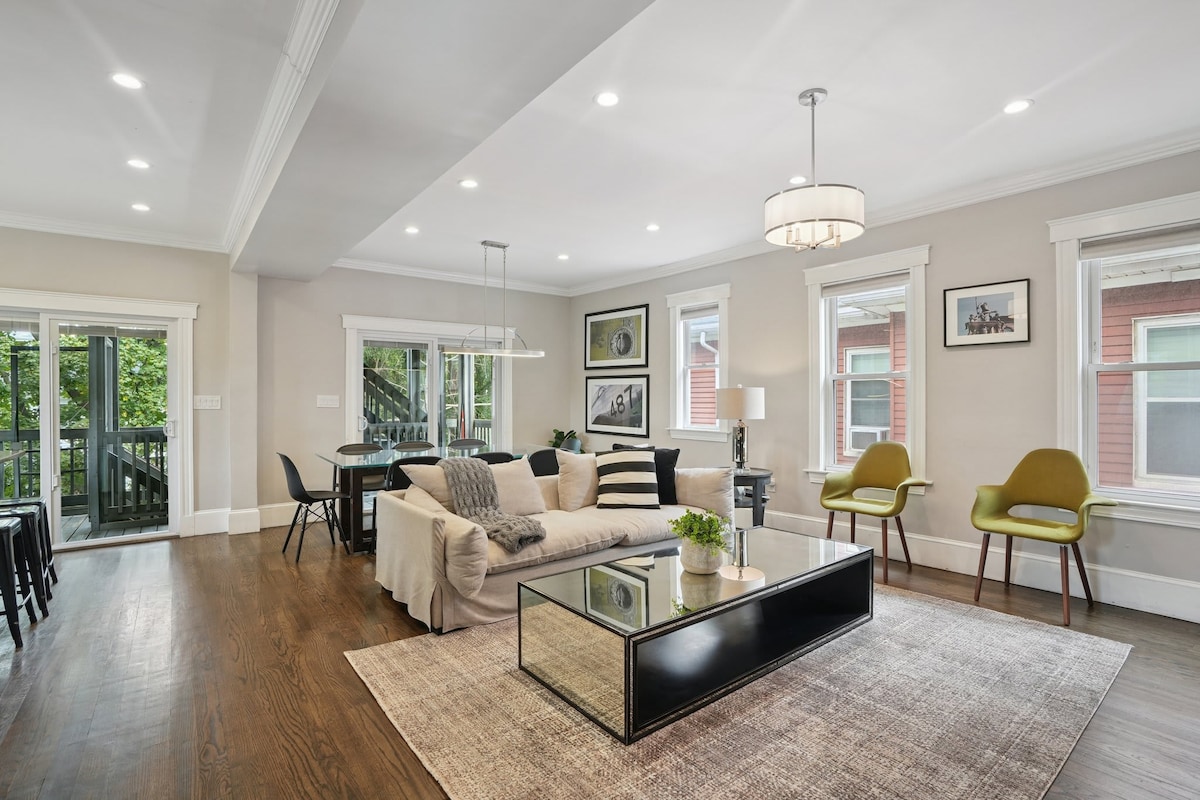 Genieße Boston in einer eleganten 2-Zimmer-Wohnung mit Bad und eleganter Inneneinrichtung für lange und kurze Aufenthalte. Nur 5 Gehminuten vom T und in der Nähe des Boston College/Harvard entfernt, kannst du geschmackvoll mit ganz Boston in Kontakt treten. Ausstattung der Einheit -> rasend schnelles WLAN -> 65-Zoll-Roku-TV im Wohnzimmer -> 50 Zoll (x2) Roku-TV im Schlafzimmer -> Voll ausgestattete Küche -> Waschmaschine und Trockner -> 2 Queensize-Betten -> 1 Einzelbett -> 1 Schlafsofa Ideal für Geschäftsreisende, Paare, Krankenschwestern und alle, die Boston stilvoll erleben möchten!