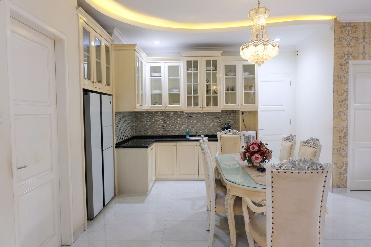 Ein neues Haus im Stadtzentrum von Purwokerto in der Nähe der Sudirman-Universität und Gor Satria. Das Haus hat ein modernes, minimalistisches Konzept, bestehend aus 3 Schlafzimmern, ausreichend für 6 Personen, und einem Schlafsofa für 2 Personen, die Bettwäsche wird immer gewechselt. Alle Zimmer sind mit Klimaanlage und eigenem Bad ausgestattet. Der gemütliche Familienraum ist mit einem Smart-TV ausgestattet. Die Küche ist komplett mit Kühlschrank, Mikrowelle, Herd, Koch- und Essutensilien, Waschmaschine. Kostenloses Trinkwasser ist vorhanden. Es gibt einen Pool, der zum Entspannen genutzt werden kann.