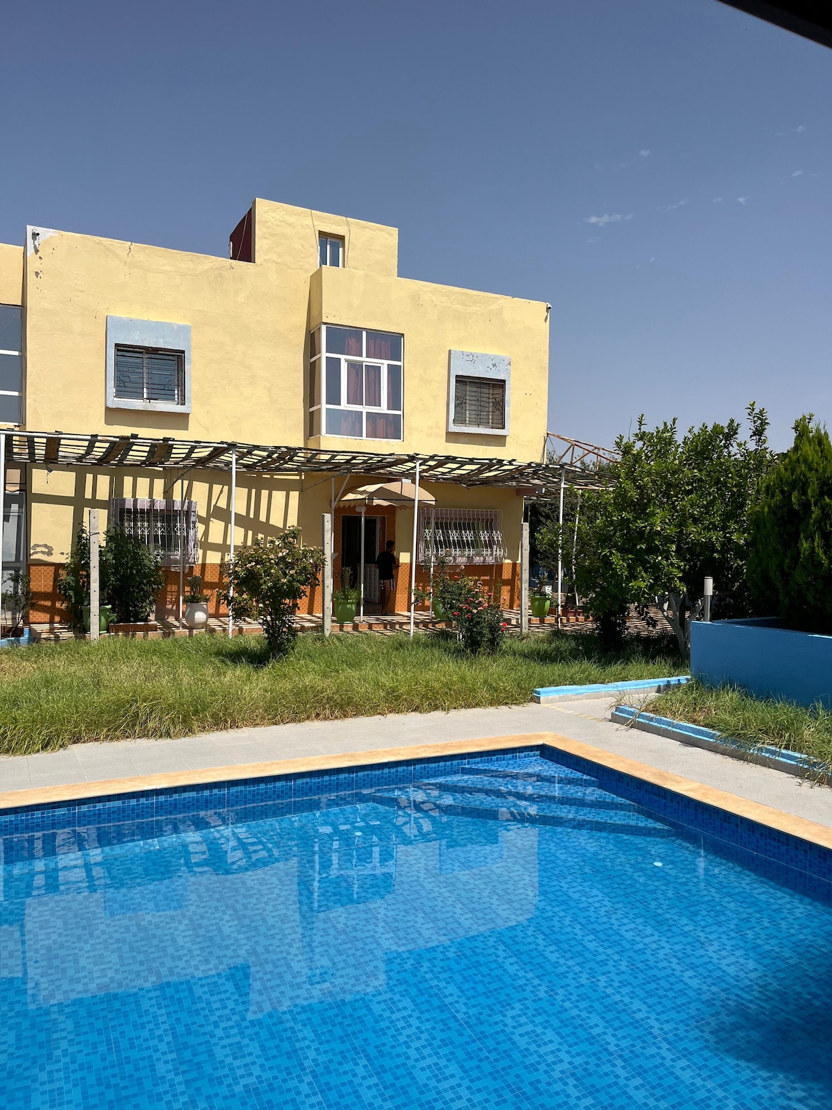 Dar Gmira (der Mond) ist eine einzigartige Oase in der Medina, in einem riesigen tropischen Garten, der von Palmen und Olivenbäumen beschattet und von Brunnen und einem wirklich großen Swimmingpool erfrischt wird. Es ist ein traditionelles Riad, luxuriös eingerichtet, ideal zum Entspannen mit Familie und Freunden. Unsere Haushälterin kümmert sich mit Hilfe eines ausgezeichneten Kochs, eines Dienstmädchens und eines Gärtners hervorragend um dich, um deinen Aufenthalt zu einem wirklich erholsamen Urlaub zu machen...