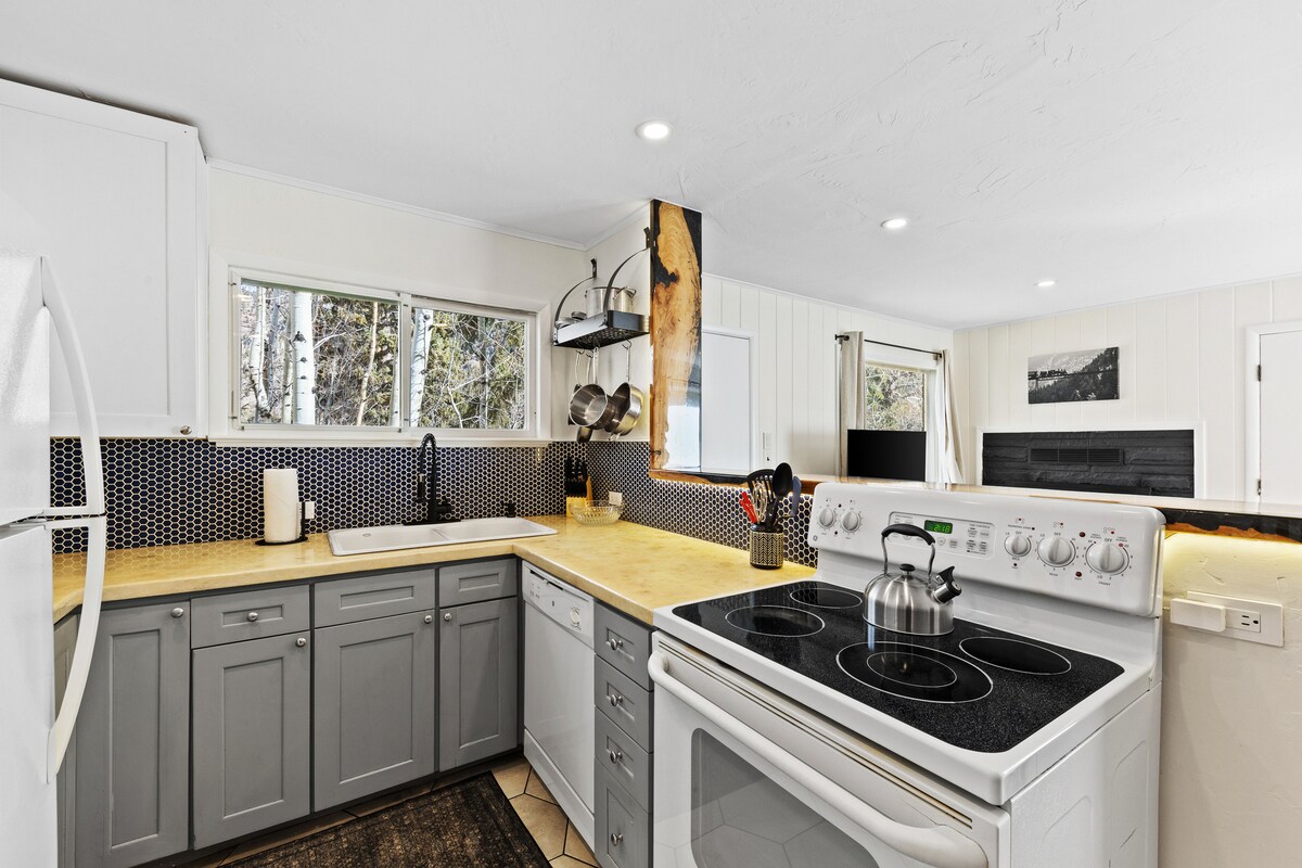 Genehmigungsnummer 24-106357 Du wirst dich auf diesen 2 rollenden Acres wie in einer anderen Welt fühlen. Die Hütte ist ein perfekter Bergurlaub, um ruhige Ruhe zu genießen, aber nur 3 Minuten von der I-70, Restaurants, Geschäften, Wanderwegen und Schönheit entfernt! Der große Wintergarten ist die Krönung der Hütte; er dringt nicht in die Natur ein, sondern ist mit Blick auf die Natur gebaut. Es versetzt dich mitten in eine Waldlandschaft mit großen Fenstern, die dir das Gefühl geben, draußen im Schnee zu sein, aber drinnen warm und gemütlich zu bleiben.