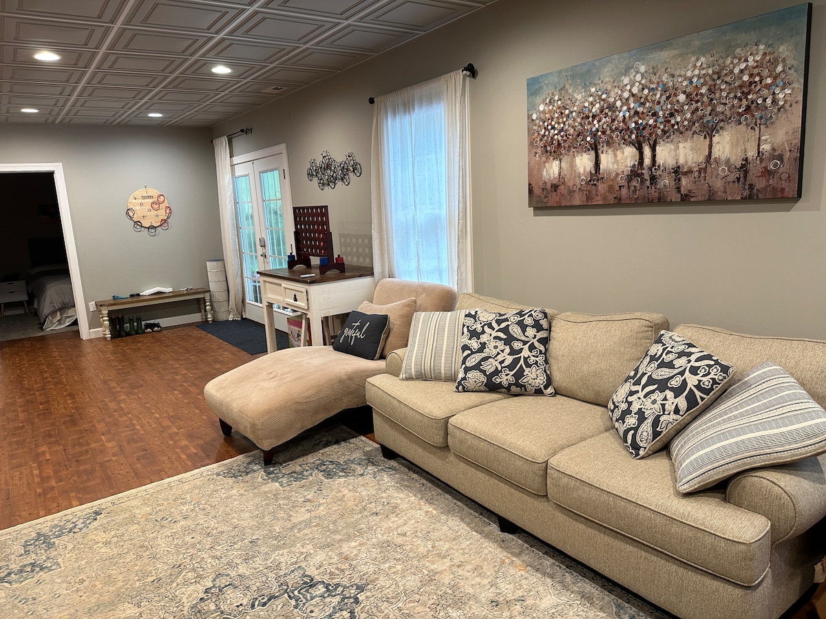 Trete ein in unsere 1-Zimmer-Wohnung in Morrissville, NC, wo wir einen gemütlichen Rückzugsort mit lebendigem, von Cafés inspiriertem Dekor geschaffen haben. Sobald du eintrittst, wirst du von einer Explosion von Farben begrüßt, die jeder Ecke dieses charmanten Raumes Leben einhauchen. Du bist nur eine kurze 10-minütige Fahrt vom RDI-Flughafen und 15 Minuten von allen großen Universitäten im Dreieck entfernt. Mit einem 24-Stunden-Concierge, einer voll ausgestatteten Küche und einem speziellen Arbeitsbereich mit Highspeed-WLAN kannst du diese Oase für Arbeit und Vergnügen genießen!
