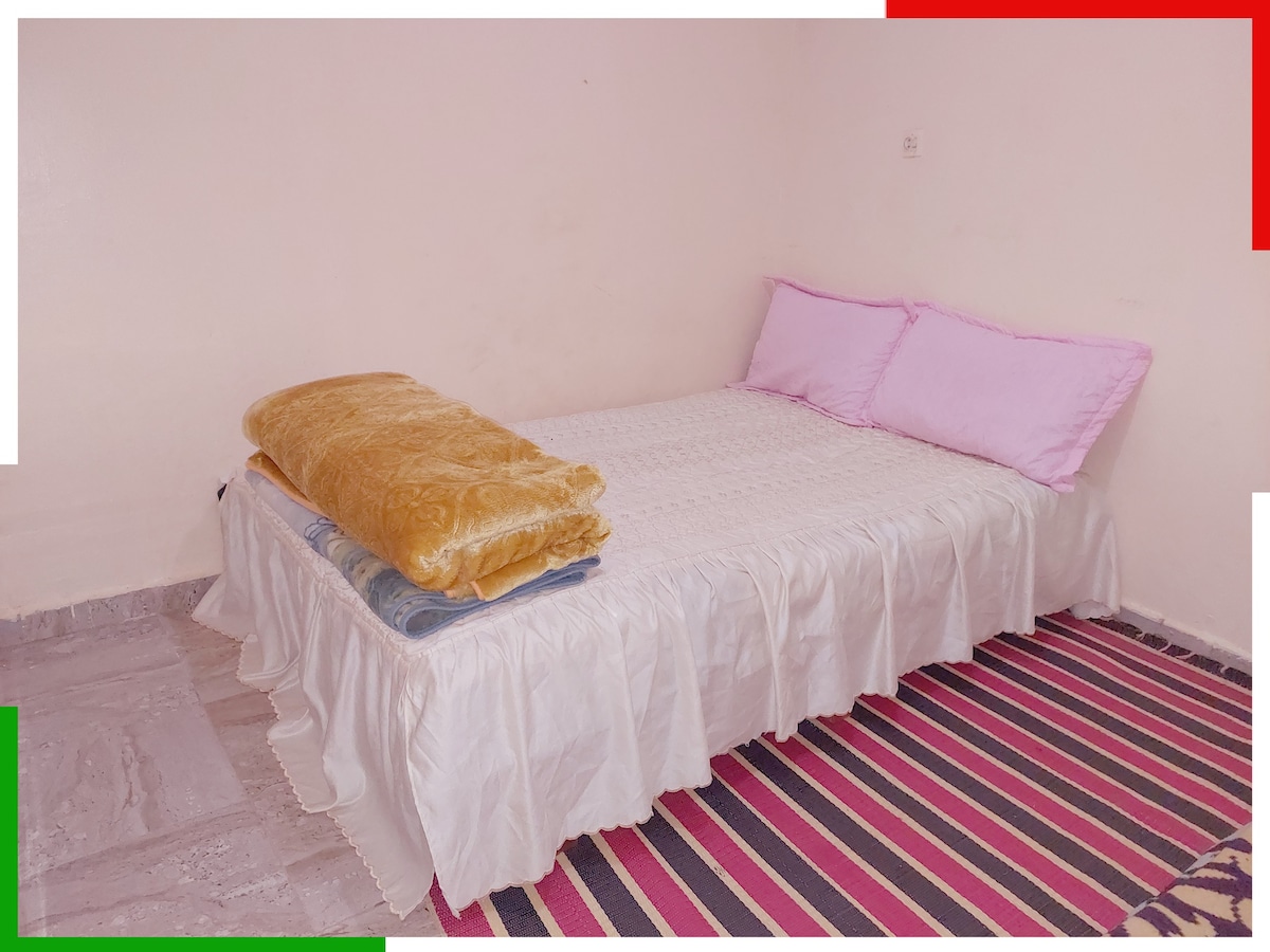 Dieses kleine Haus im Berberstil liegt im Palmenhain von Ouarzazate und wird dich für seinen Charme und Komfort verzaubern. Ruhe, Entspannung, Treffen mit unseren Tieren sind garantiert. Mit Swimmingpool und Garten, der mit anderen Reisenden geteilt wird. Frühstück inbegriffen, Klimaanlage/Heizung, WLAN, Terrasse und kostenlose sichere Parkplätze. Schlafzimmer mit 1 Doppelbett + 3 Einzelbetten. Ein umwandelbares Wohnzimmer mit 2 Einzelbetten und eine ausgestattete Küchenzeile. Ideal für Naturliebhaber und authentisch.