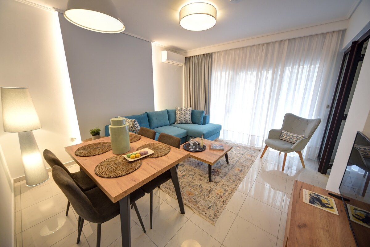 Καλαίσθητο διαμέρισμα 47 τμ., 2 δωμάτιων σε φιλική γειτονιά με άνετη βεράντα και έπιπλα εξωτερικού χώρου για χαλάρωση! Το διαμέρισμα βρίσκεται 5 λεπτά μακριά με το αυτοκίνητο από το κέντρο της πόλης και 1km μακριά από την πλησιέστερη οργανωμένη παραλία που προσφέρει ένα παραθαλάσσιο εστιατόριο και καφέ μπαρ. Η μοντέρνα διαρρύθμιση σε συνδυασμό με την καθαριότητα των χώρων σε μια ήσυχη και γαλήνια γειτονιά είναι αυτό που θα κάνει την εμπειρία της διαμόνης σας μοναδική και αξέχαστη.