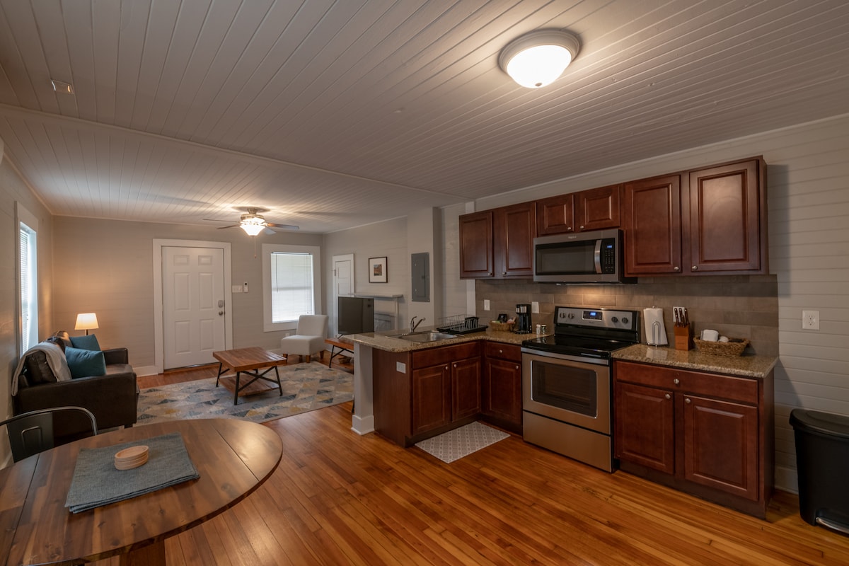 Übernachte in unserem modernen Vintage-Gästehaus im historischen Trinity Park. Unser Ferienhaus verfügt über alle modernen Geräte mit Vintage-Armaturen. Unser Ferienhaus ist ein gemütlicher, bewohnter Rückzugsort mit rustikalem Charme. Dieses 380 Quadratfuß große Ferienhaus befindet sich in einer sehr lebendigen und sicheren Gegend, nur wenige Minuten von der Innenstadt von Durham entfernt. Wandere eine Meile auf dem Ellerbe Creek Trail in die Innenstadt! ZU Fuß unterwegs 1,5 Meilen zu Restaurants und Geschäften in der 9th Street 1 Meile zum Central Park und zum Bauernmarkt <1 Meile zu Bars und Restaurants auf der Geer Street