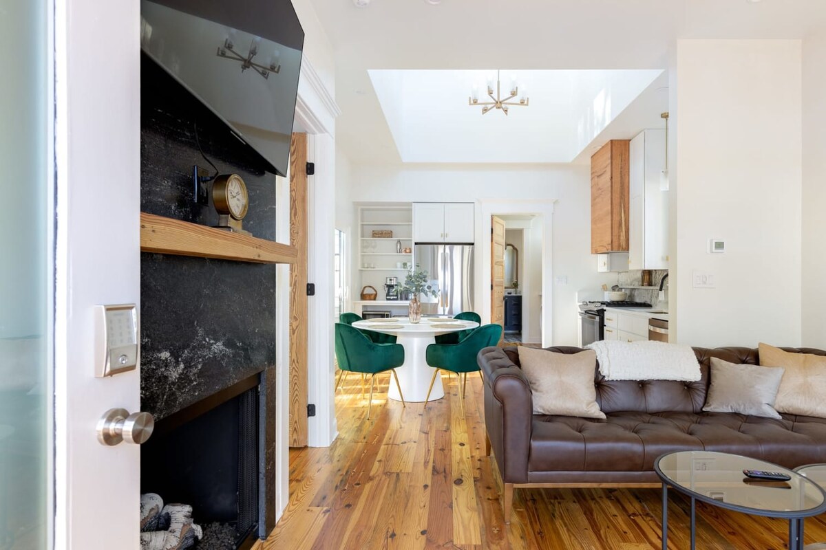 Entdecke einen stilvollen Kurzurlaub in der Innenstadt von Durham! Dieses Luxushaus verfügt über Designer-Ausführungen, gewölbte Decken, einen steinernen Innenhof, einen Essbereich im Freien und ist ideal zum Entspannen. Du findest exquisites, unvergessliches Design mit recycelten Kiefernböden, einem Gaskamin und einer modernen Küche. Mit kostenlosen Parkplätzen und einer erstklassigen Lage ist es perfekt, um die Stadt zu erkunden.