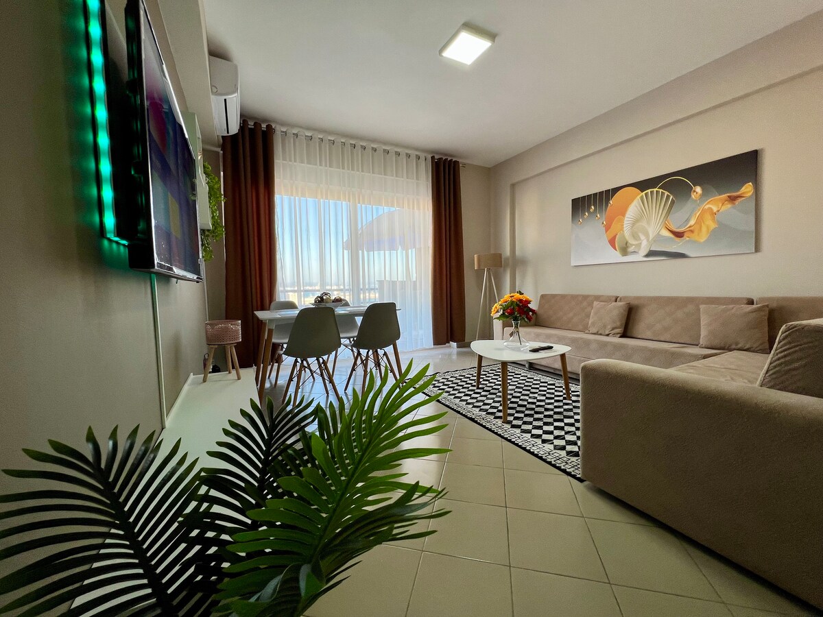 - Diese einzigartige Unterkunft hat einen eigenen Stil. - Die Wohnung verbindet Stil und Komfort, die sich in der interessantesten Gegend von Durres befindet: Vollga Promenade mit einer spektakuläre Aussicht auf die Adria. - Perfekt für Kurz- und Langzeitvermietungen, da es sich in erstklassiger Lage befindet, nur wenige Schritte vom Strand und vom Stadtzentrum entfernt. - Die Wohnung befindet sich im 10. Stock und bietet einen Aufzug. 💻Gut ausgestattet für INTELLIGENTES Arbeiten mit einem super schnellen WLAN von 100 MB/s.