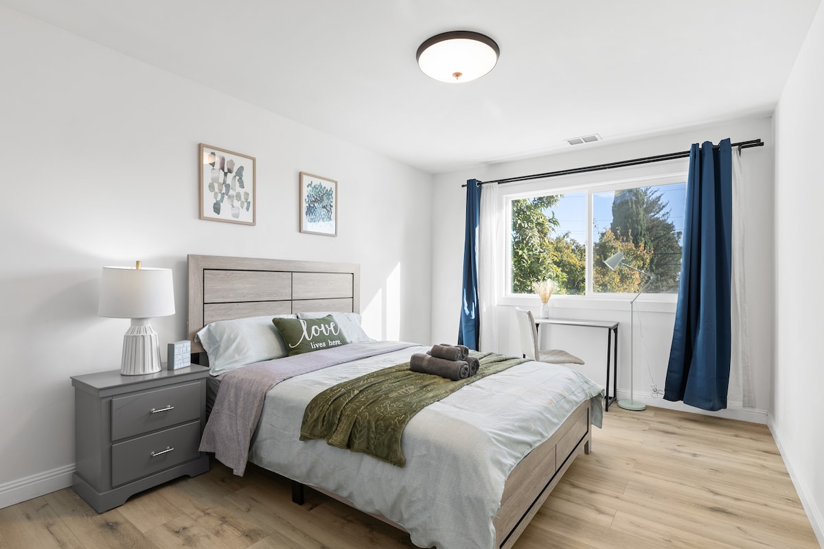 Hab Spaß mit der ganzen Familie in dieser stilvollen Unterkunft. Neu renoviertes, stilvolles Haus in günstiger Lage. In der Nähe von Stanford, der Innenstadt von Palo Alto, Meta und Google usw. Parkplätze stehen bei der Unterkunft zur Verfügung. Voll ausgestattete Küche mit brandneuem Herd. Jedes Schlafzimmer verfügt über ein Queensize-Bett. Zusätzliches tragbares Bett oder Luftbett kann im Wohnzimmer mit zusätzlichen 30 $/Person pro Nacht und frühzeitiger Benachrichtigung hinzugefügt werden. Großer privater Hof, ideal für eine Familie zum Entspannen und Genießen der Natur.