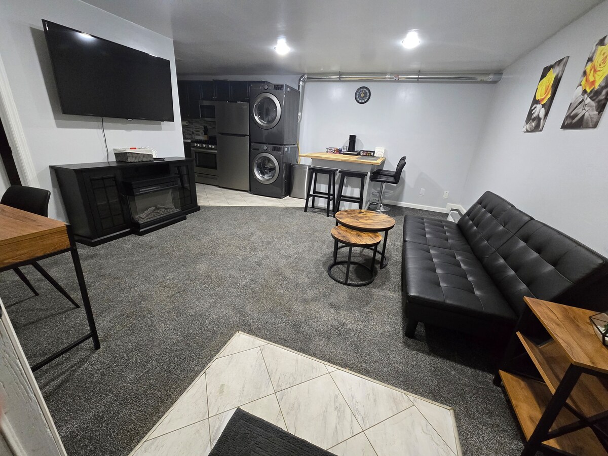 *Wenn du gute vorherige Bewertungen hast, buche unsere Unterkunft und erhalte innerhalb von 24 Stunden ein Angebot! Ein gut ausgestattetes gemütliches Studio nur 20 Minuten von den Hamptons und 10 Minuten vom LIRR-Bahnhof entfernt, um nach NYC zu fahren (kostenlose Parkplätze am Bahnhof!) Dieses Studio verfügt über eine kleine Küchenzeile zum Aufwärmen von Mahlzeiten, einen großen Kühlschrank. Wir bieten einige Snacks für den nächtlichen Heißhunger. Ein Queensize-Bett, ein separater Schreibtisch und Stuhl zum Lernen oder Arbeiten, eine Couch, ein Smart-TV und eine ruhige Umgebung zum Entspannen und Erholen.