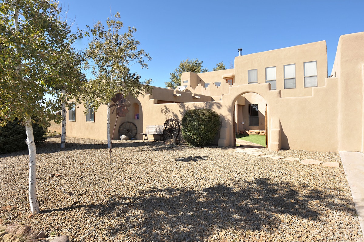 Genieße endlose Southwest Vistas mit der Gastfreundschaft der Southwestern Ranch. Dein Tor zum Südwesten, eine kurze Fahrt von Albuquerque und Santa Fe entfernt und eine direkte Fahrt zu den Four Corners. 25 Minuten vom Flughafen Albuquerque Sunport, 50 Minuten zur Santa Fe Plaza, 2,5 Stunden zum Chaco Canyon Nationalpark, Park, 6 Stunden zum Grand Canyon. Übernachte unter den Sternen mit endlosen, unvergesslichen Ausblicken in einer ziemlich hohen Wüstenlandschaft am Rande des Nationalwaldes. Genieße ein wahrhaft bezauberndes südwestliches Erlebnis.