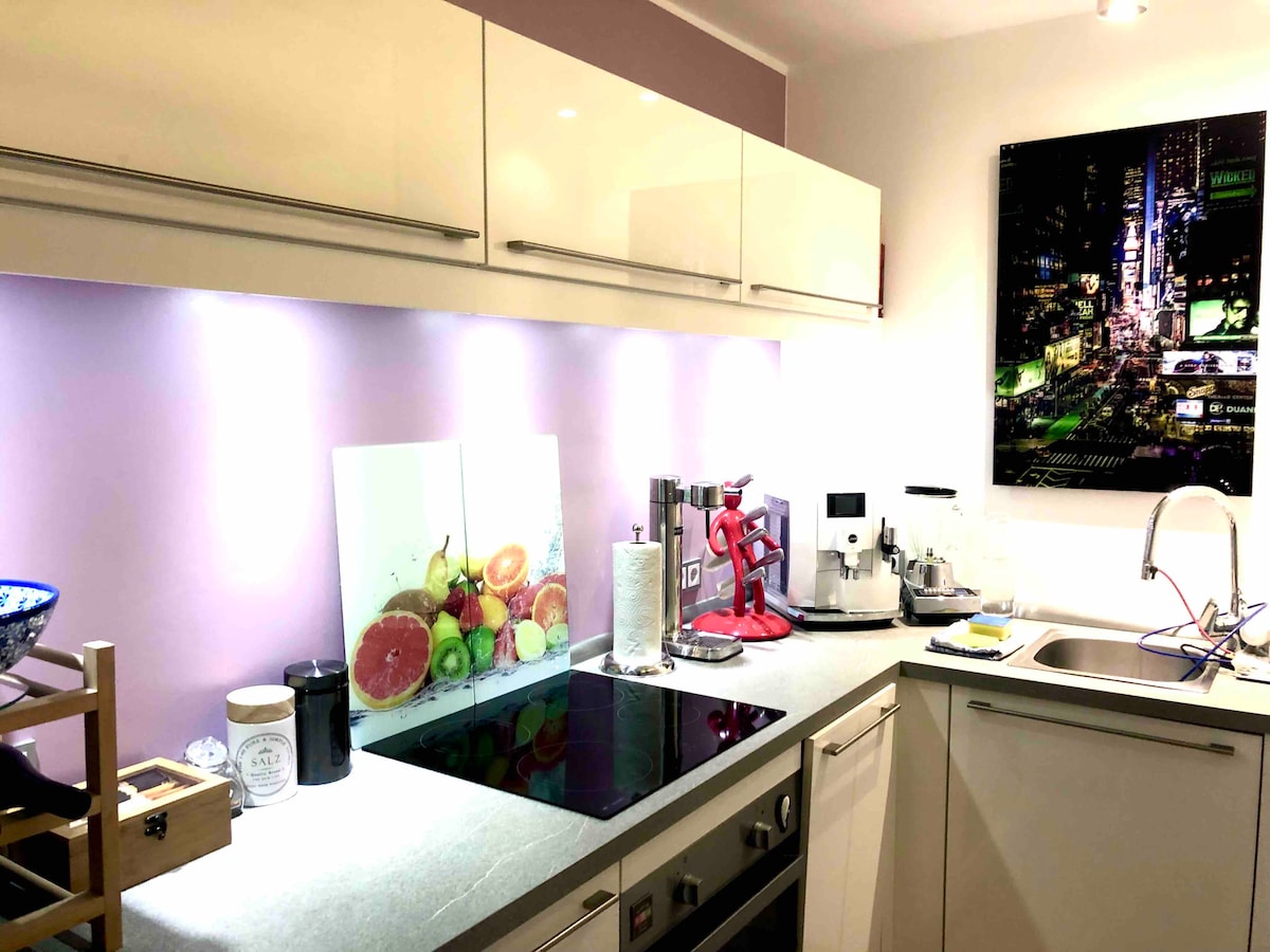 Sonniges, exklusives 1-Zimmer Apartment in der Kölner Innenstadt für 1-2 Personen; offener Grundriss, Fußbodenheizung, komfortables Bett (1,40 x 2m), stilvoller Wohnbereich, Küche, hochwertige Einbaumöbel; modernes Bad-Design mit Tageslicht u. exklusiver Ausstattung; Highspeed-WLAN bis 100 mbit/sec; aufwendiges Lichtdesign 3 min. zu den Einkaufsstraßen, Restaurants und Bars vor der Haustür, 800 Meter bis zum Dom, Autobahn A57 per Auto in 5 min. Buchungen ab 90 Tagen gerne individuell anfragen.