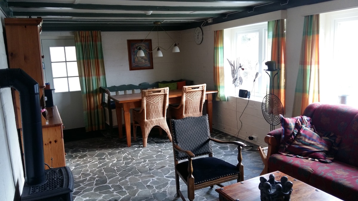 Large and cozy wooden house by the Romsdalsfjord. The house is located in Brevika/Isfjorden, ten minutes drive from Åndalsnes centre. Great view to the fjord and the mountains in Romsdal! The house is 200 years old, newly renovated and modernized. All fascilities included. The house has access to the beach within short distance. The closest grocery store is 3 minutes drive.