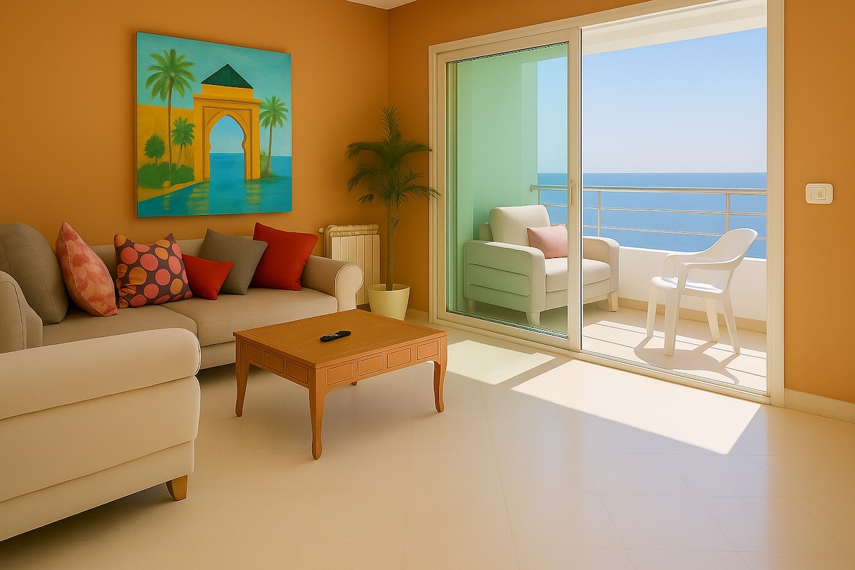 Découvrez le charme d’un appartement moderne et élégant avec un accès direct à la mer. Chaque réveil sera sublimé par une vue imprenable sur l’horizon marin. Conçu pour votre confort, notre espace offre une décoration raffinée et des équipements haut de gamme. Profitez de la tranquillité des lieux et du doux murmure des vagues depuis votre balcon privé. L’idéal pour une échappée où se mêlent luxe, calme et volupté. P.S.: L’accès à l’appartement se fait par l’extérieur, en passant par la plage.