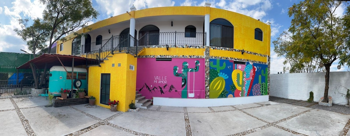Genieße die Wärme dieser ruhigen und zentralen Unterkunft, in der du Momente der Entspannung und des Lesens im Herzen des magischen Dorfes genießen kannst. Wir haben zwei geräumige Zimmer mit WC und eine Suite, in der Sie angenehme Abende in der Ruhe unseres Innenhofs und der Terrasse verbringen können. Wir haben auch eine Küche und Entspannungsräume. Nur 2 Minuten zu Fuß zum Zentrum, Hauptplatz und ehemaliges Kloster von Yuriria. 10 Minuten zur Lagune und schönen Grünflächen zum Wandern.