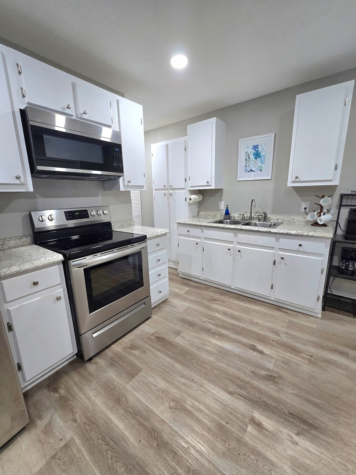 Unser gemütliches Haus liegt in einer ruhigen Straße, umgeben von großen Eichen, und ist nur wenige Minuten von einem Coffeeshop, Walmart und vielen anderen Restaurants und Geschäften entfernt. Lass uns dafür sorgen, dass es sich wie zu Hause anfühlt! Wir bieten frisch gerösteten Kaffee und eine Küche mit Utensilien sowie eine Waschmaschine und einen Trockner. Entspanne dich auf einem Schaukelstuhl auf der hinteren Veranda, wenn du ankommst und entspanne dich! Es gibt keine Check-out-Anforderungen, sodass du dich auf deinen Tag konzentrieren kannst, wenn du bereit bist, zu gehen. Schreib uns eine Nachricht über Rabatte auf monatliche Aufenthalte