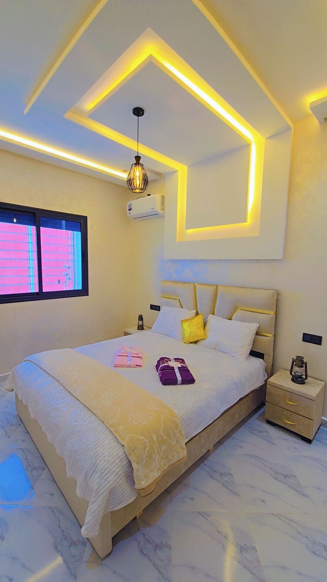 Genieße eine elegante 2-Zimmer-Wohnung im Herzen von Meknès, wo marokkanischer Charme auf modernen Komfort trifft ✨ Entspanne dich im hellen Wohnzimmer mit Klimaanlage, Smart-TV und raffiniertem Dekor, bleibe mit schnellem Glasfaser-WLAN in Verbindung und genieße einen Dolce Gusto-Kaffee im schönen Essbereich. Die Schlafzimmer verfügen über gemütliche Betten, sanfte Beleuchtung und eine ruhige Atmosphäre für erholsame Nächte — perfekt für Familien, Paare und Geschäftsreisende.