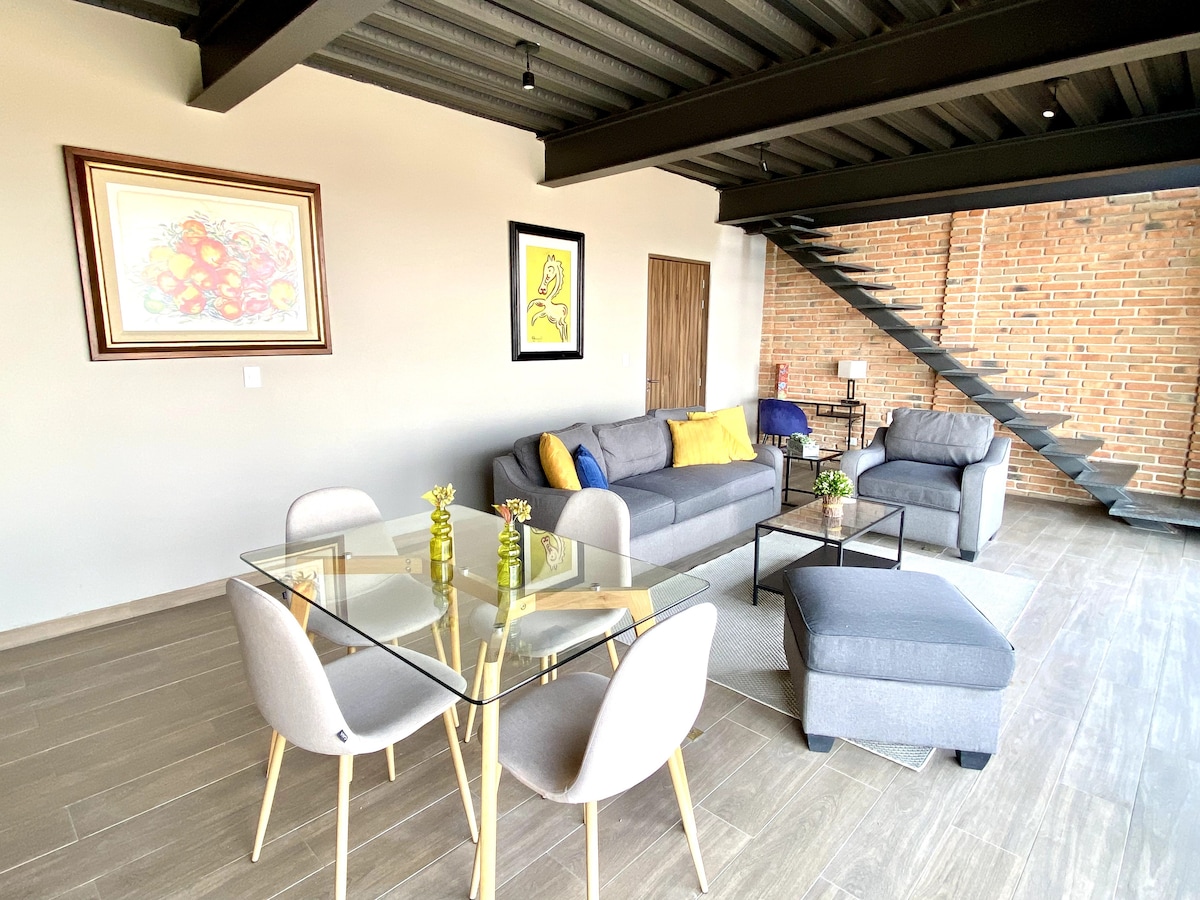 Entdecken Sie die atemberaubendsten Aussichten von Querétaro! Von dieser modernen Wohnung im industriellen Stil. Genießen Sie nur 10 Minuten vom Zentrum entfernt einen unglaublichen Panoramablick auf die Stadt und die Berge. Perfekt für Gruppen von bis zu 3 Personen, bietet es einen gemütlichen und funktionalen Raum, der Komfort und Stil verbindet. Sie ist ideal für Geschäfts- oder Urlaubsreisen aufgrund der einfachen Erreichbarkeit, der Geschäfte und der Möglichkeit, deinen Aufenthalt in Rechnung zu stellen. Erleben Sie den Komfort, den Ihnen diese Wohnung bietet.