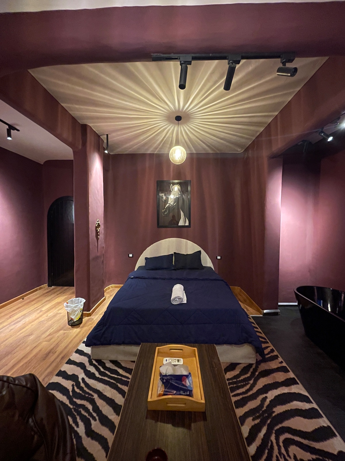 Entspann dich in dieser besonderen und ruhigen Unterkunft. Und genieße ein Haus, das sich wie zu Hause anfühlt, wo du einen Platz zum Entspannen und Wohlfühlen findest, und du kannst auch arbeiten und deine Geschäfte in einem ruhigen und attraktiven Arbeitsraum erledigen, und wenn du eine tägliche Routine hast, Sport zu treiben, dann ist dies der richtige Ort für dich. Wir befinden uns ganz in der Nähe des Flughafens Kairo. Was du vorfindest: - 2 Schlafzimmer - 2 Badezimmer - Küche -Wohnbereich - Essbereich - Bürofläche - Trainingsraum - Balkon mit einem Tisch im Freien
