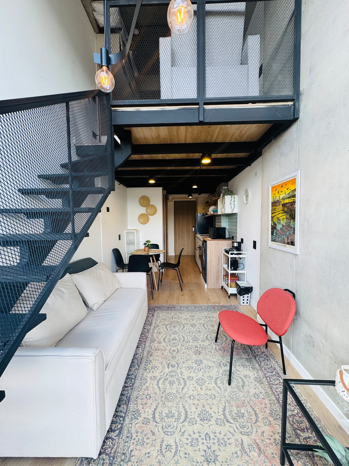 Gemütliches, zentrales und sicheres Loft! Nur 10 Minuten vom Flughafen und 5 Minuten vom Busbahnhof El Salitre entfernt. Perfekt für Paare, die Privatsphäre und Komfort suchen. Genieße deine eigene möblierte Außenterrasse, perfekt zum Entspannen und um frische Luft zu genießen. Du bist umgeben von über 15 Restaurants, Supermärkten, Bäckereien, Banken und 2 Einkaufszentren. Ideal für deinen amerikanischen Visumprozess, CAS nur 7 Minuten entfernt.