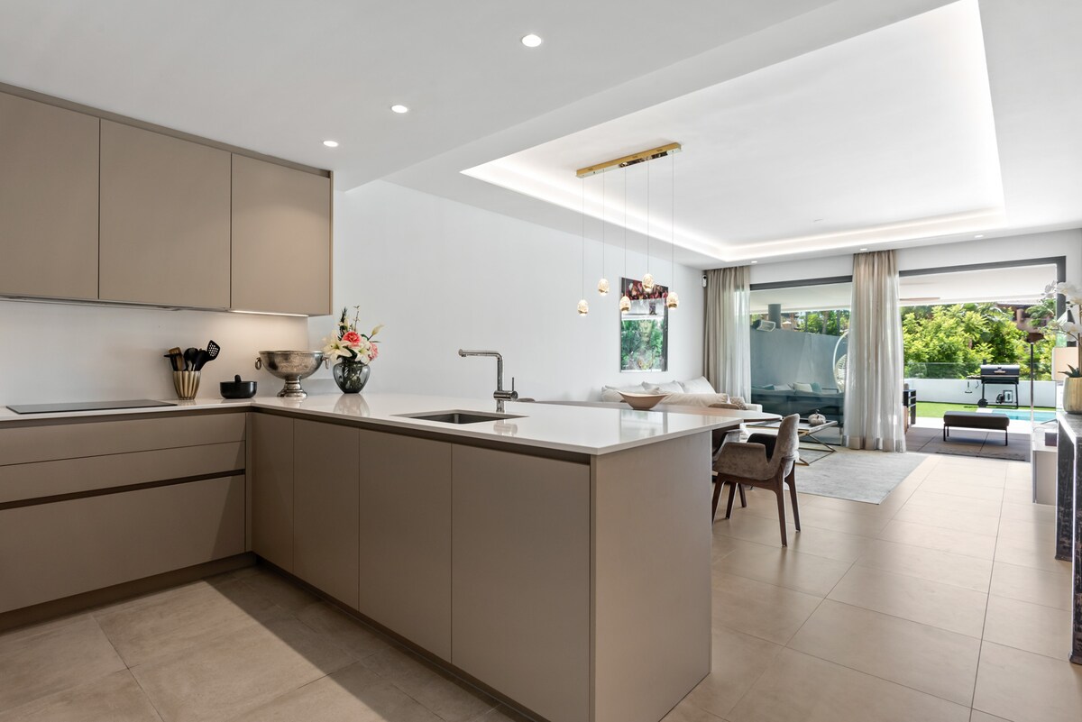 Willkommen in deinem eleganten Rückzugsort in Marbella. Diese wunderschön eingerichtete 1-Zimmer-Wohnung bietet Stil, Komfort und einen Hauch von Gelassenheit – perfekt für Paare, Alleinreisende oder digitale Nomaden. 🌿 Private Gartenoase Genieße morgens Kaffee oder abends Wein in deinem eigenen privaten Garten – ein seltenes und entspannendes Merkmal, nur wenige Minuten von der Küste entfernt.