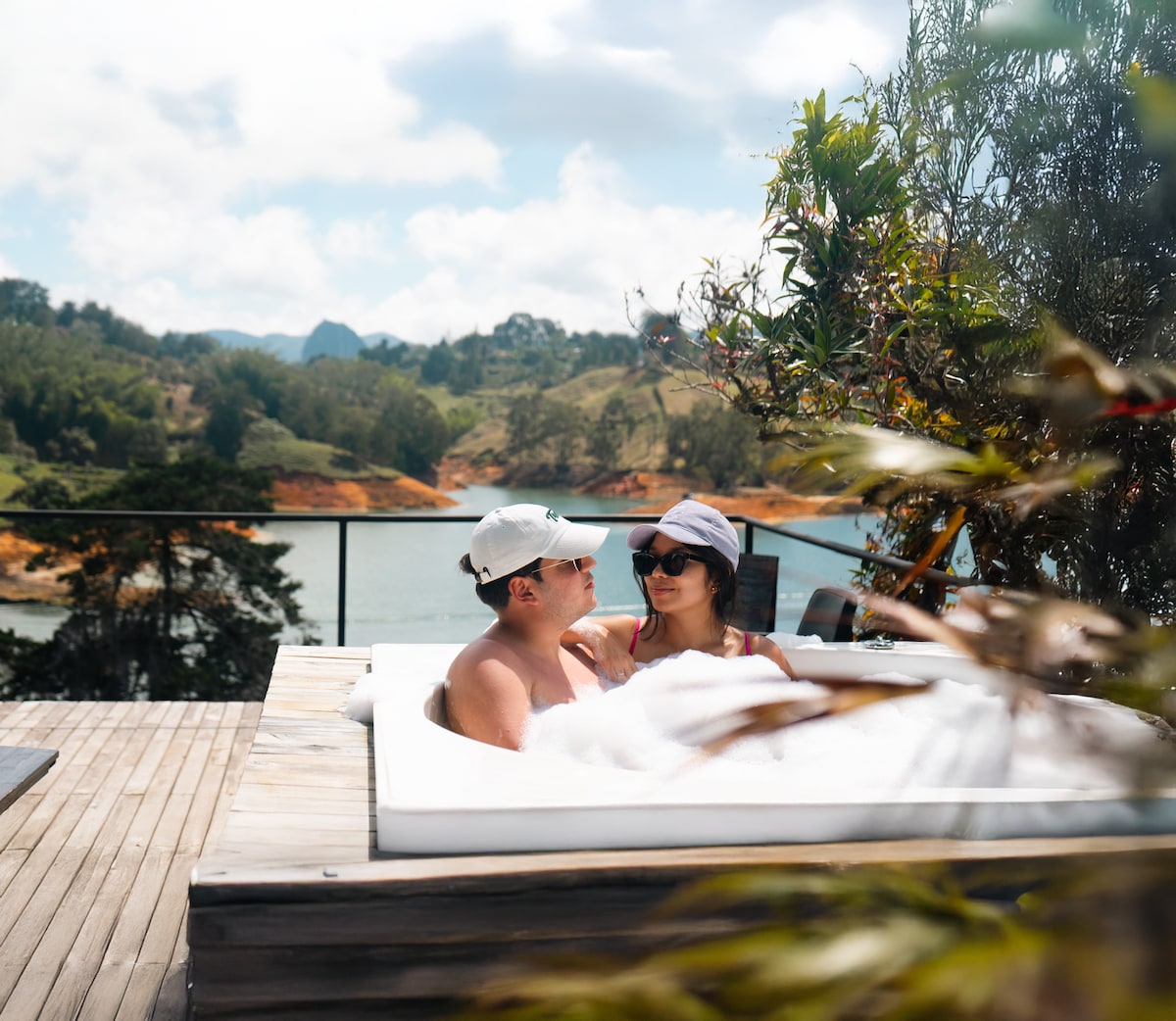 Hütte mit Whirlpool mit Blick auf den Guatapé-See