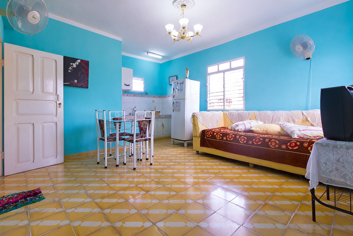 Das Haus befindet sich an der folgenden Adresse Calle Piro Guinart #408A zwischen Juan Manuel Marquez und Bartolome Riva Cedeño. Im historischen Zentrum der Stadt, 20 Meter von der Tavern la Botija entfernt, besteht das Haus aus 2 Zimmern mit eigenem Bad und großen Fenstern mit einer Gesamtkapazität von 5 Personen. Es verfügt über 2 Terrassen, auf denen du den Sonnenuntergang genießen kannst. Yeni kennt sich mit der Geschichte der Stadt aus, damit sie nicht zögern, sie um Informationen über die Geschichte der Villa zu bitten.
