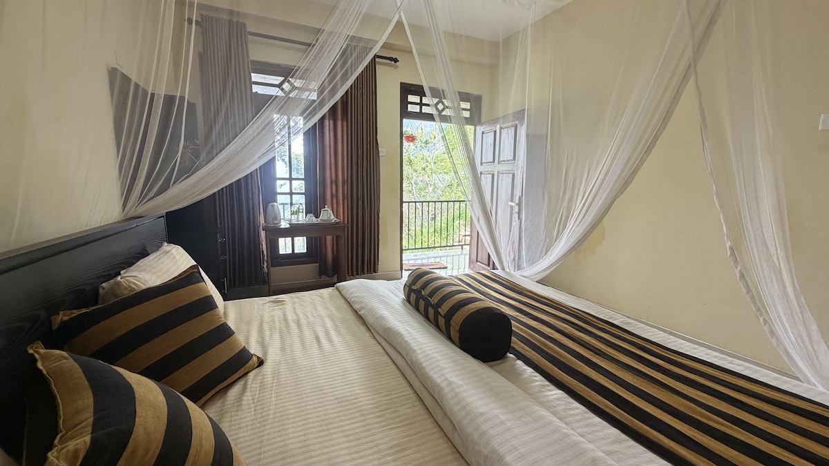 Sri Lanka Tourism Board–certified 3-star hotel offering private balconies with stunning views of Ella Rock, Ravana Rock, Little Adam’s Peak, waterfalls, and beautiful sunrises and sunsets. Located just a 15-minute walk from Ella Railway Station and 2 km from Ella Spice Garden. Popular attractions such as Demodara Nine Arch Bridge (5 km) and Little Adam’s Peak (4 km) are nearby. Breakfast is included, with tea-making facilities and a washing machine available for guests.