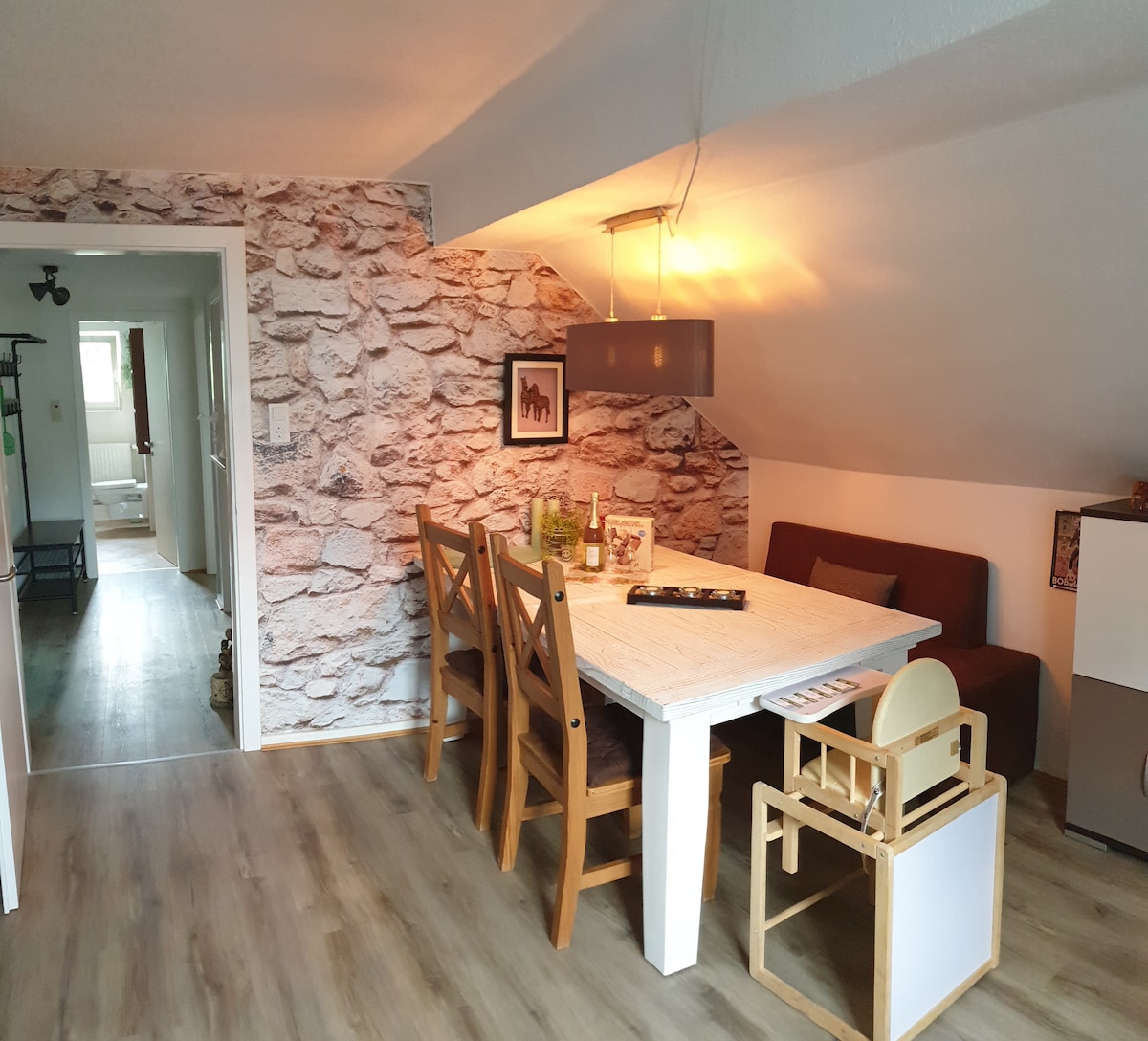 Die Ferienwohnung befindet sich auf 550 Höhenmeter, im Herzen des Sauerlands. Ein kleines Paradies, so nennen wir es. Perfekt für Naturverbundene, die eine Auszeit vom Alltagsstress brauchen. Für Kinder bieten wir ein Erlebnis mit zahmen Schafen, Hühnern und Hasen, die auf dem Grundstück frei laufen. Unsere glücklichen Hühner versorgen euch morgens mit frischen Frühstückseiern. Nach Absprache gibt es ebenso frische Forellen aus dem Fischteich. Ein kleines Zuhause zum Wohlfühlen und Genießen.