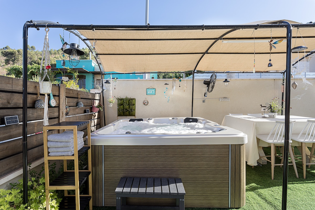 Willkommen in Azmara, einer charmanten Pension in Amirim mit atemberaubendem Blick auf das Obere Galiläa. Umgeben von einem privaten, üppigen Garten bietet es Ruhe, Privatsphäre und eine Verbindung zur Natur. Die geräumige offene Pension verfügt über ein Badezimmer mit einer Badewanne, Fußbodenheizung und einem sicheren, verstärkten Raum (Mamad). Genieße das ganze Jahr über den kleinen beheizten privaten Pool (mit optionaler Kühlung im Sommer). Frühstück ist auf Anfrage gegen eine zusätzliche Gebühr verfügbar.