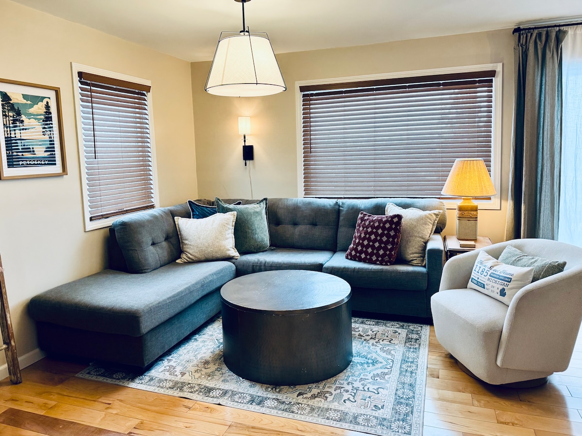 Willkommen in deinem gehobenen Kurzurlaub im Herzen von Charlevoix. Genieße Luxus mit unserer Wohnung mit 2 Schlafzimmern/2 Bädern, mit einem privaten Balkon, der einen atemberaubenden Blick auf die Bridge Street und den Round Lake bietet. Genieße Zugang zu unserer einzigartigen Dachterrasse im Gemeinschaftsbereich mit atemberaubendem Blick. Eingebettet in eine erstklassige Lage bieten diese Apartments die perfekte Mischung aus modernem Luxus und charmantem Ambiente in der Innenstadt und sorgen für einen ruhigen und malerischen Aufenthalt - Unser Tauchbecken ist offiziell für den Sommer 2025 geöffnet!