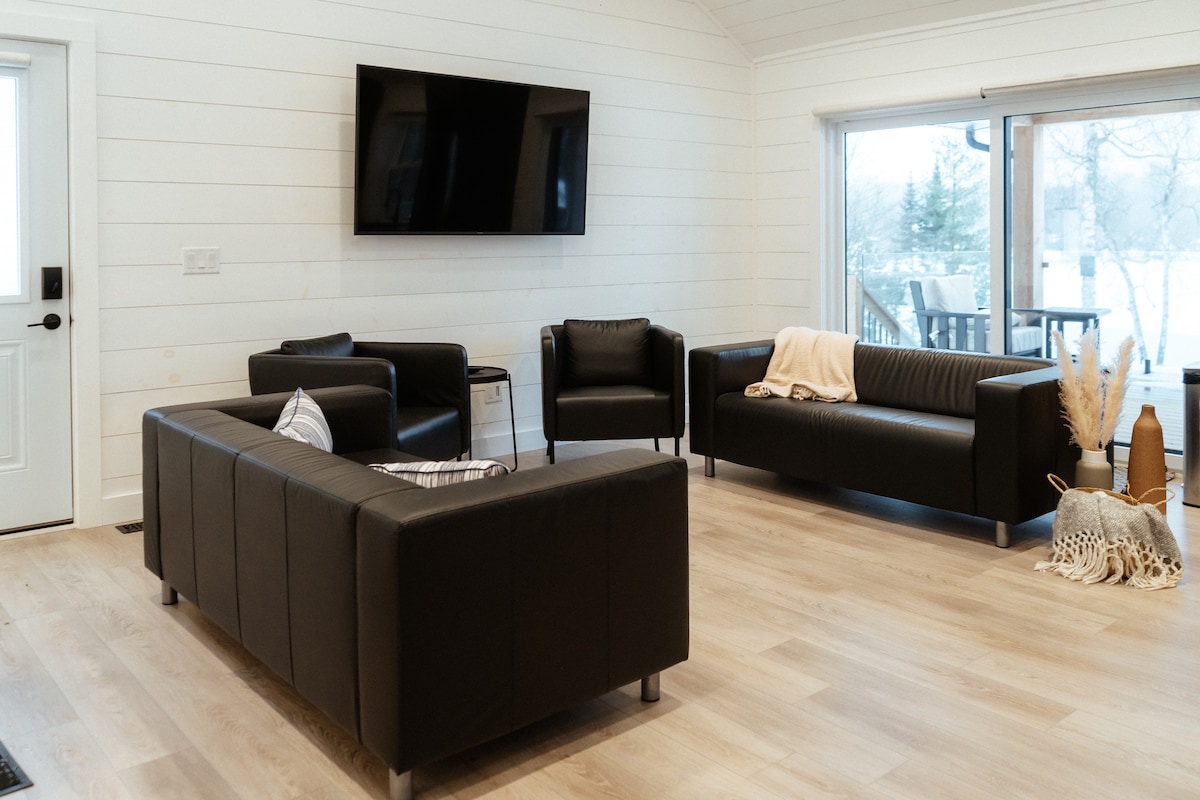 Entfliehe in die Aux Box, eine luxuriöse Boutique-Hütte in den Muskoka-Wäldern mit ruhigem Blick auf den Fluss. Es ist auf Komfort und Stil ausgelegt und verfügt über Fußbodenheizung, maßgeschneiderte Schränke und hochwertige Ausstattung. Tritt ein in dein privates nordisches Spa mit Sauna, Whirlpool und Kaltwasserbecken für ultimative Entspannung. Genieße absolute Abgeschiedenheit, während du weniger als 10 Minuten von den Geschäften, Restaurants und dem Charme der Innenstadt von Huntsville entfernt bist. DEMNÄCHST: Zugang am Wasser mit privatem Steg, Liegestühlen und einem Kanu.