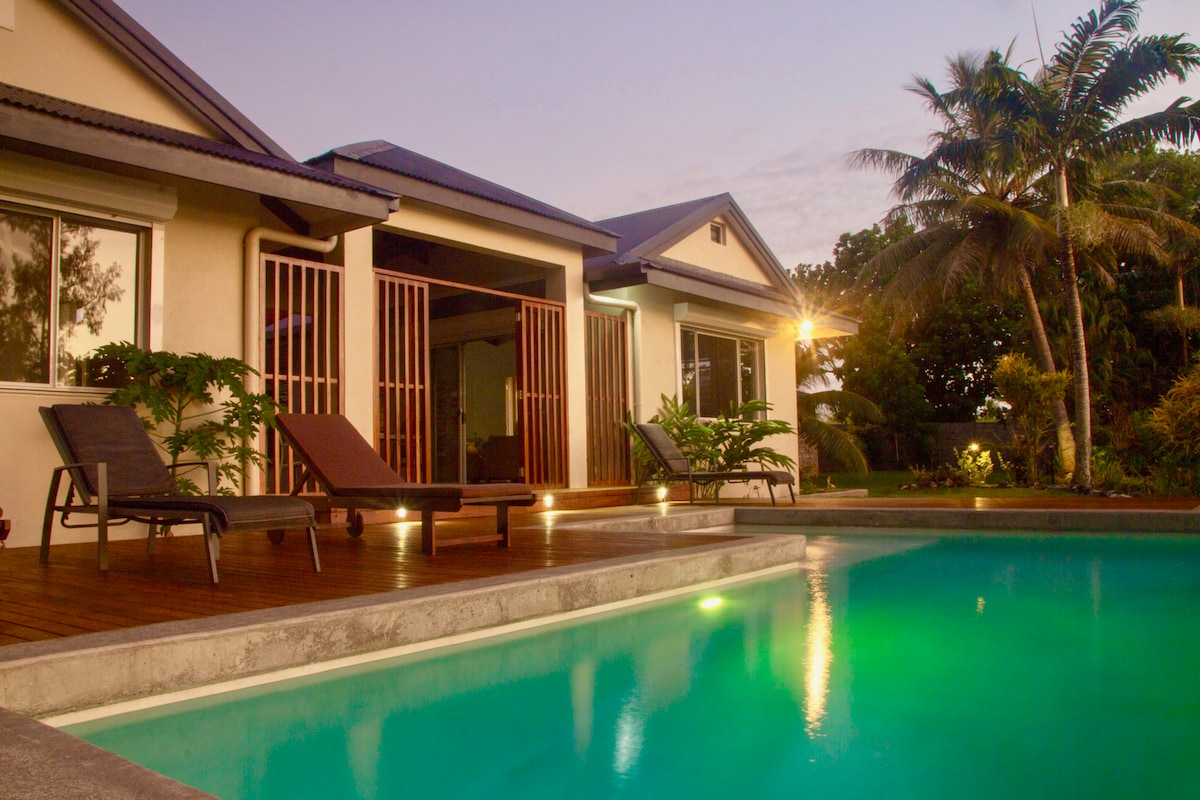 Bring die ganze Familie in die Villa Petra mit viel Platz für alle. Europäischer Stil in einem großen Einfamilienhaus, perfekt für einen Urlaub mit der Familie oder Gruppe. Große Räume, ein riesiger Außenpool und mehrere Bereiche, in die du dich bei Bedarf zurückziehen kannst. Genieße atemberaubende Sonnenuntergänge mit einem Drink in einem der vielen Außenbereiche. Die Villa Petra liegt günstig nur eine kurze Fahrt von lokalen Sehenswürdigkeiten wie der Blauen Lagune, dem Eton Beach und den Rarru (Rentapao) River Cascades entfernt