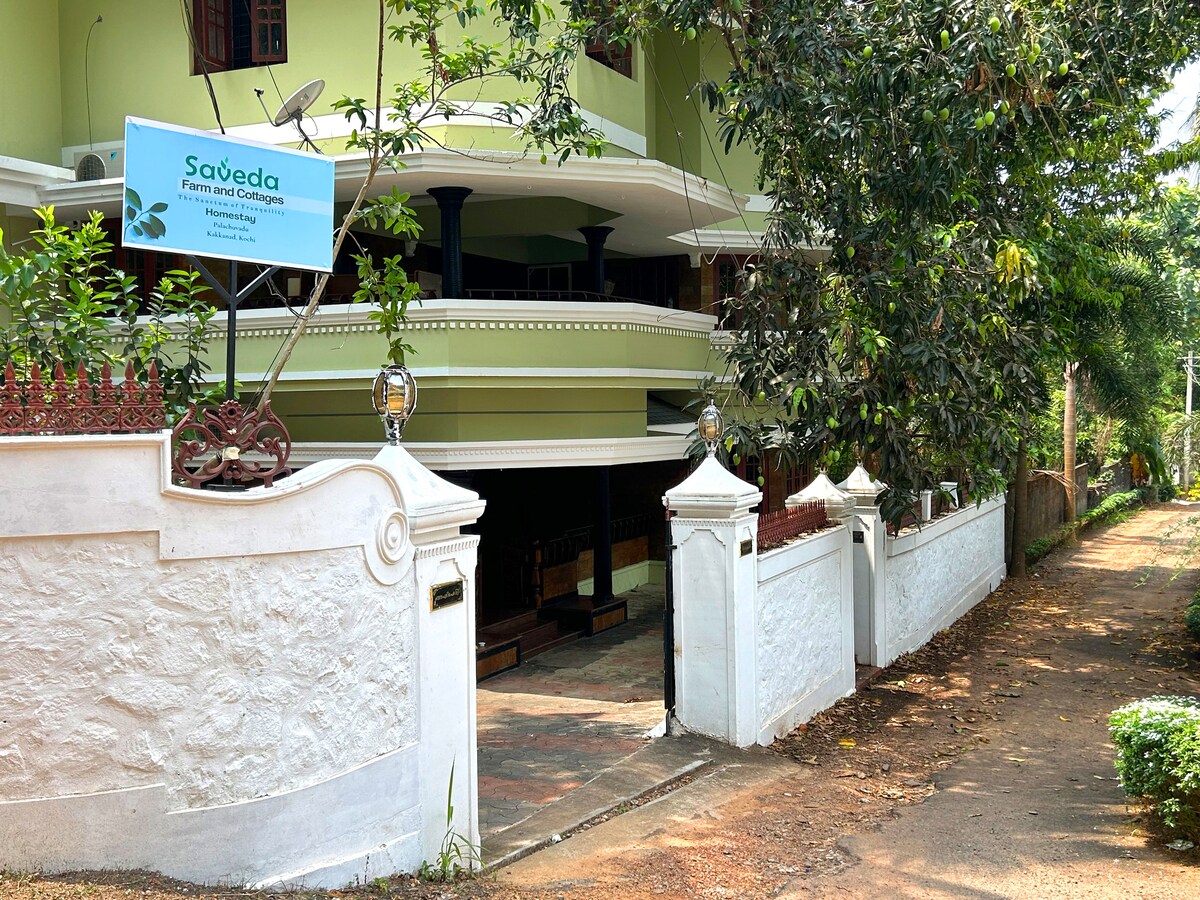 Pearl House liegt inmitten von Grün in der Stadt Ernakulam, abseits des hektischen Treibens. In der Nähe der Natur mit einem Garten, Regenwassernutzung, Solarbeleuchtungssystem, Biogas, Aquaponik usw. Unser Haus befindet sich in der Nähe der Deshabhimani Road, nur 4 km entfernt von Lulu Einkaufszentrum und 2 km von der U-Bahn-Station JLN Stadium entfernt. Wenn du auf der Suche nach einem ruhigen Raum innerhalb der Stadtgrenzen bist, ist unser Zuhause vielleicht die richtige Wahl. Wir wohnen nebenan, falls du etwas brauchst…