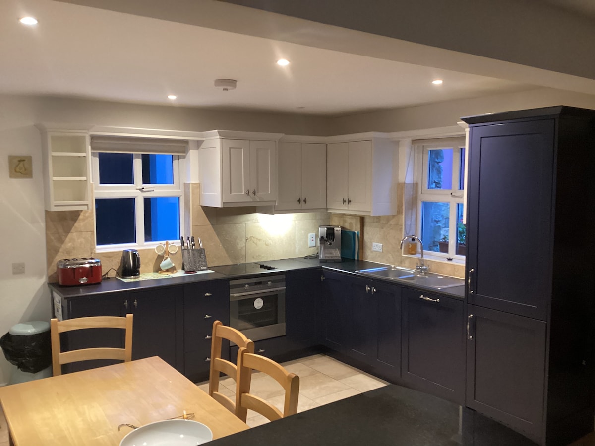 The Barn ist eine einzigartige alte Steuerscheune, aber modern, mit einem offenen Sitz-/Küchen-/Essbereich mit Kathedralendecke und einem langen schmalen Fenster mit Blick auf den Salzsee auf der einen Seite, einem kleinen Fenster mit Blick auf das Meer auf der anderen Seite. Es gibt zwei Schlafzimmer und ein Badezimmer im Nassraumstil (keine Badewanne), aber viel heißes Wasser und Fußbodenheizung. Es ist wunderbar ruhig, ein echter Rückzugsort für diejenigen, die einfach nur entkommen wollen. Highspeed-Glasfaser-Internet. Leider nicht für Haustiere oder Kinder geeignet.