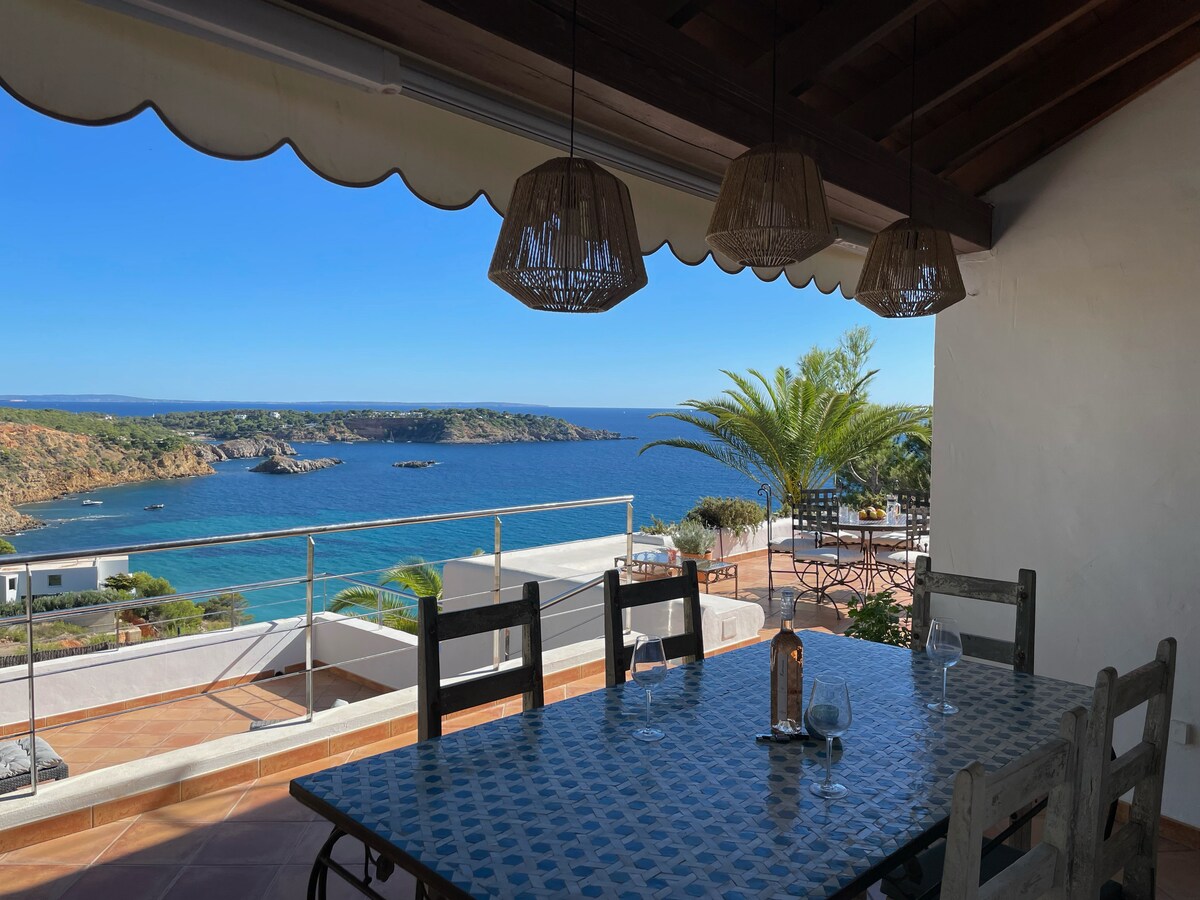 Ideales Landhaus zum Entspannen und Genießen der Natur von Ibiza. Ideal gelegen an der felsigen Küste von Cala Codolar, ganz in der Nähe der Strände von Cala Codolar, Cala Conta, Cala Bassa und Cala Tarida. Tolle Terrasse mit Blick auf den Pinienwald und das Meer mit schönen Sonnenuntergängen auf Ibiza. Komplett renoviert, sorgfältig eingerichtet, rustikal und gemütlich. Ideal für Familien.