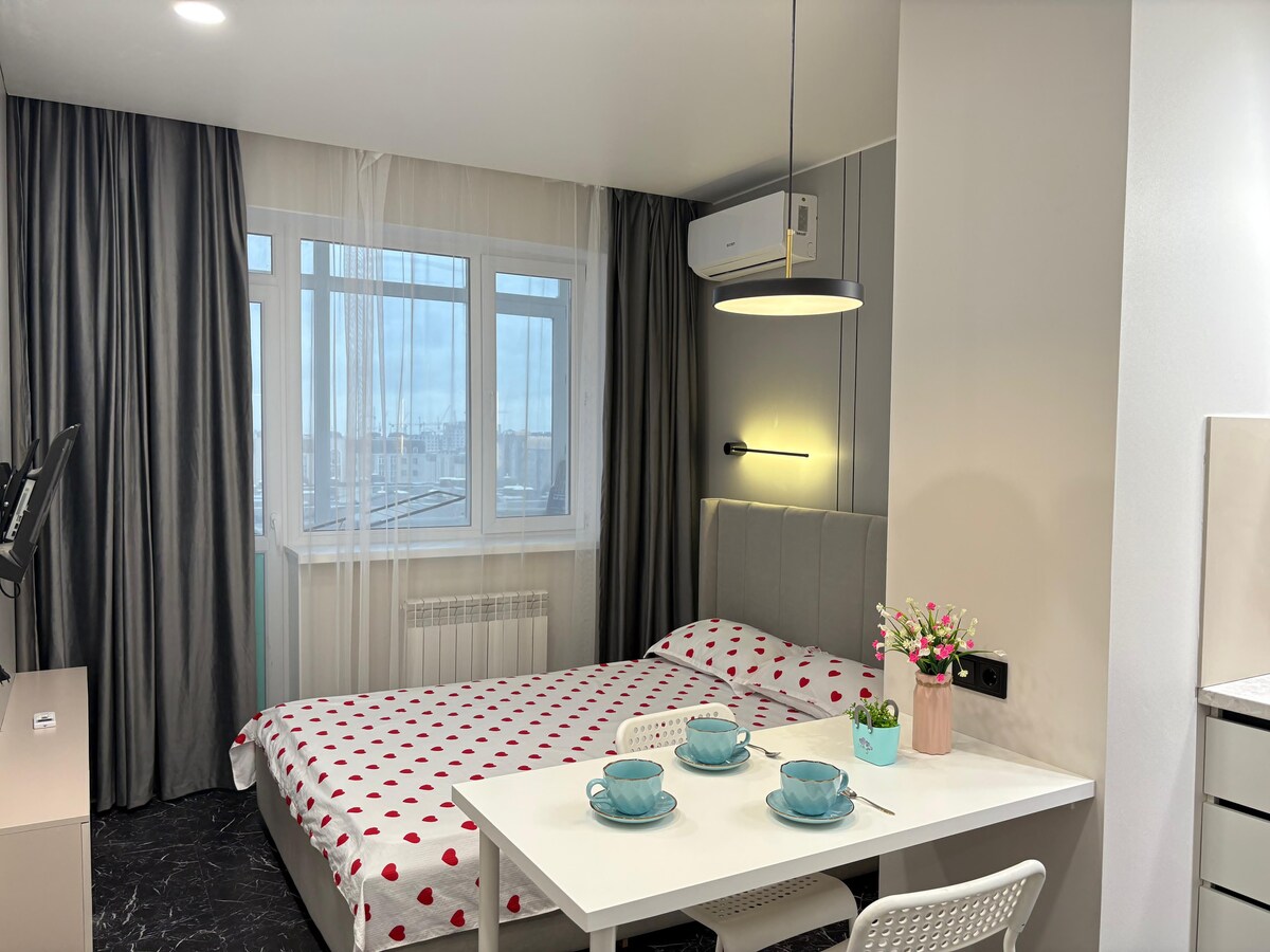 Ein gemütliches, minimalistisches Studio ist perfekt für einen Gast oder ein Paar. In einem neuen Gebiet neben der Barys Arena, der Astana Arena und dem Botanischen Garten gelegen. Klein, aber sehr hell und komfortabel: Es gibt alles, was du für einen angenehmen Aufenthalt benötigst – WLAN, Küchenbereich, frische Handtücher und Bettwäsche. Eine großartige Wahl für diejenigen, die Sauberkeit, Ordnung und eine gute Lage zu schätzen wissen.
