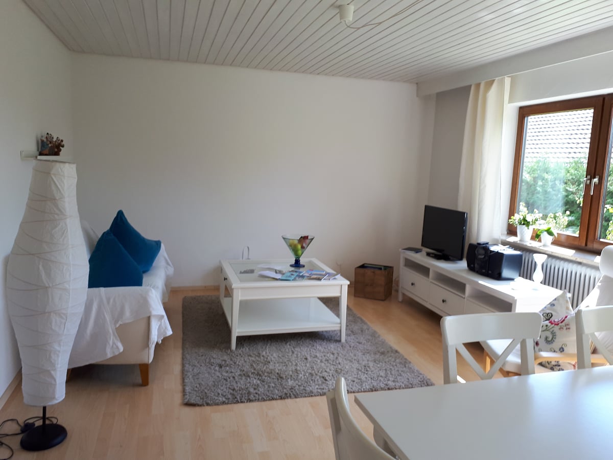 Schönes 1 Zimmer Apartment im EG unseres neuen Hauses. Geeignet für 2 Personen mit max einem Kind. Sehr schön gelegen am Rande des kleinen Ortes Sumpfohren. Nahegelegene Alpaka, Esel und Vogel-Straußen Gehege stellen das Highlight für Kinder dar. Für Erwachsene ist die Unterkunft der ideale Ausgangspunkt für Radtouren mit unter auf dem Donau-Radweg oder für schöne Wanderungen z.B. in der Wutachschluch. Zudem befindet sich in ca 3 km Entfernung ein Hallenbad sowie ein Baggersee.