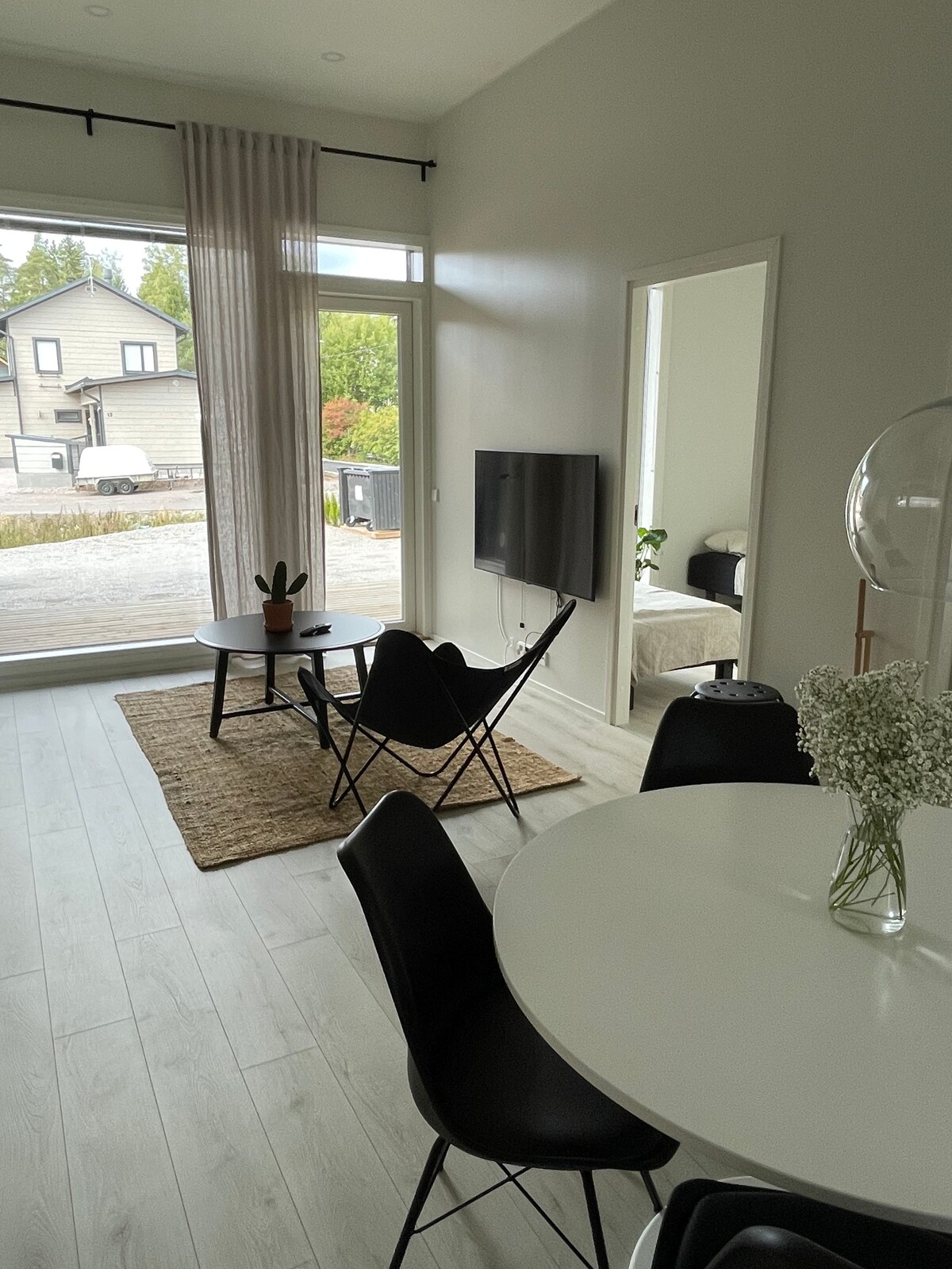 Stilvolle Einrichtung, ein großer verglaster Balkon und flexible Zeiten: immer früher Check-in (12:00 Uhr) und später Check-out (18:00 Uhr). Gute Lage im Herzen von Tikkurila, in der Nähe des Flughafens. 10 Gehminuten zum Bahnhof, mit direktem Zugang zum Flughafen (10 Minuten) oder zum Zentrum von Helsinki (15 Minuten). Alle Fernzüge halten auch in Tikkurila. Große Lebensmittelgeschäfte (Prisma, K-Supermarket / 200 m / geöffnet von 6:00 bis 0:00 Uhr) und viele Restaurants in der Nähe. Gegen Aufpreis steht ein beheizter Garagenparkplatz zur Verfügung.