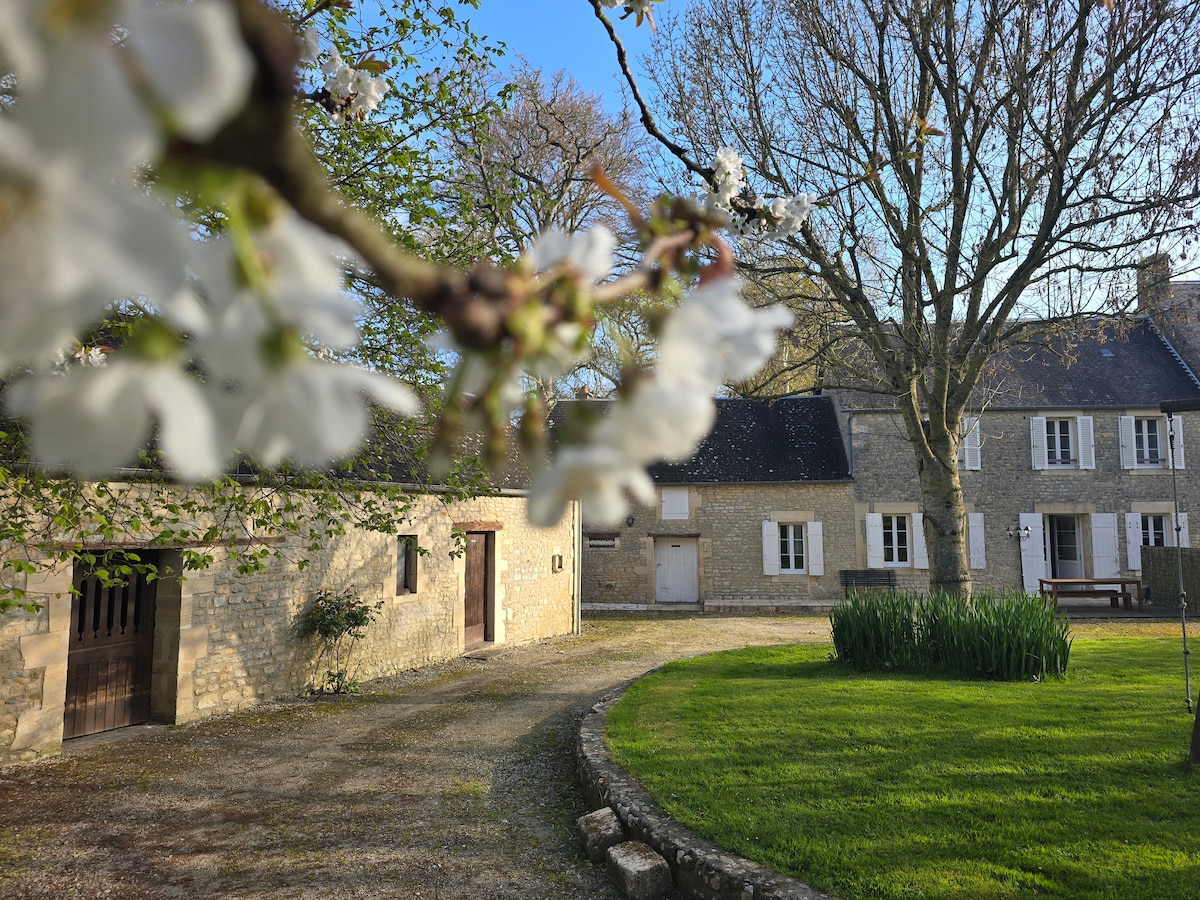 Die Ferme du Loucel mit dem ersten Teil aus dem Jahr 1673 ist ein 4 Hektar großes Anwesen in Colleville sur Mer Omaha-Beach. Les Lilas ist ein kleines Haus von 50 m² mit einem kleinen privaten Garten, einer Terrasse nach Süden und es ist ebenerdig. Der amerikanische Friedhof ist weniger als 2 km entfernt, der Strand 1,2 km. Wir wohnen vor Ort und werden da sein, um Sie zu begrüßen und Ihre Fragen zu beantworten. Der Preis beinhaltet die Miete, gemachte Betten, Handtücher, Heizung in der Saison und WLAN, TV. Optionale Reinigung.